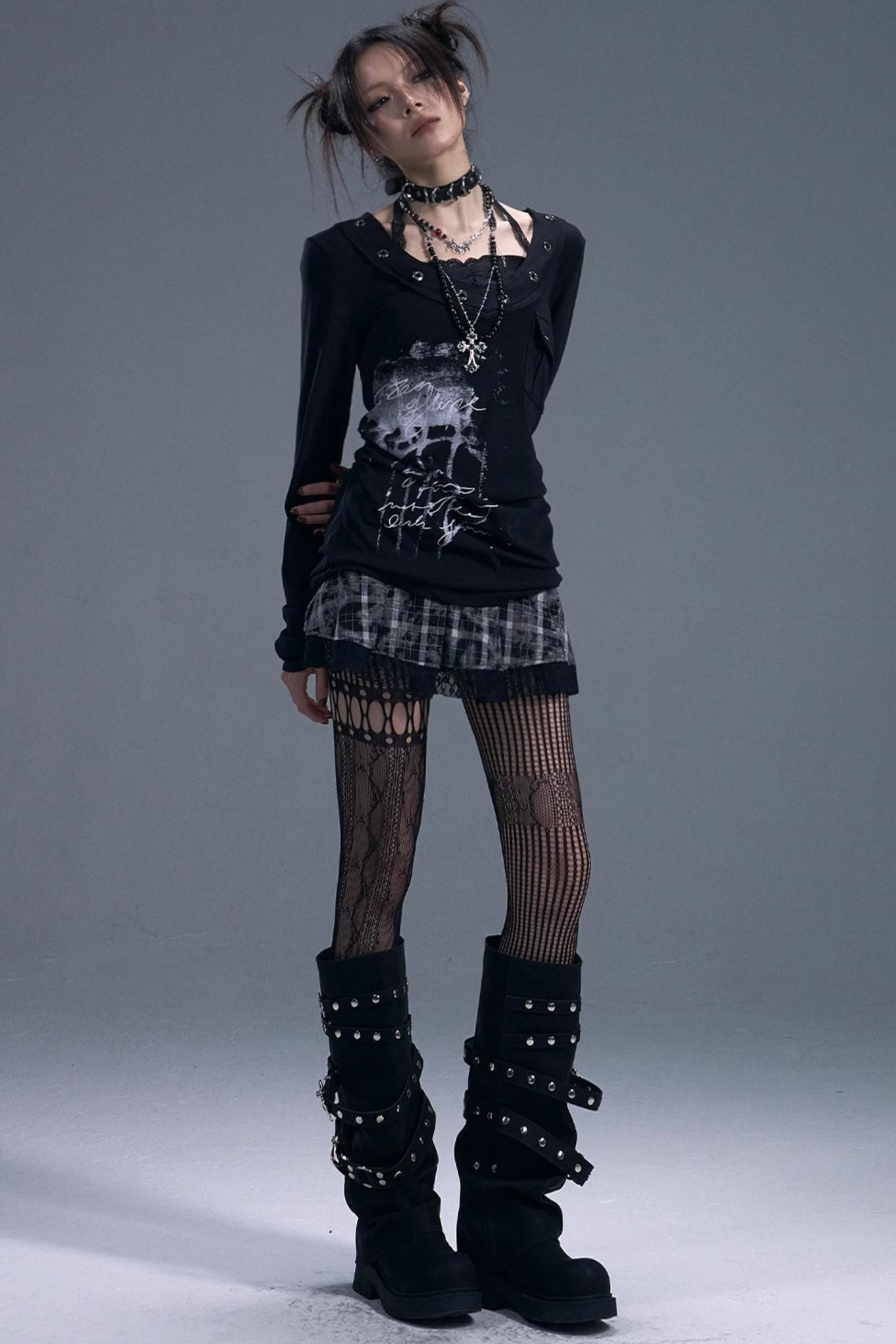 Dark Lace Halterneck Fake Two-Piece Top