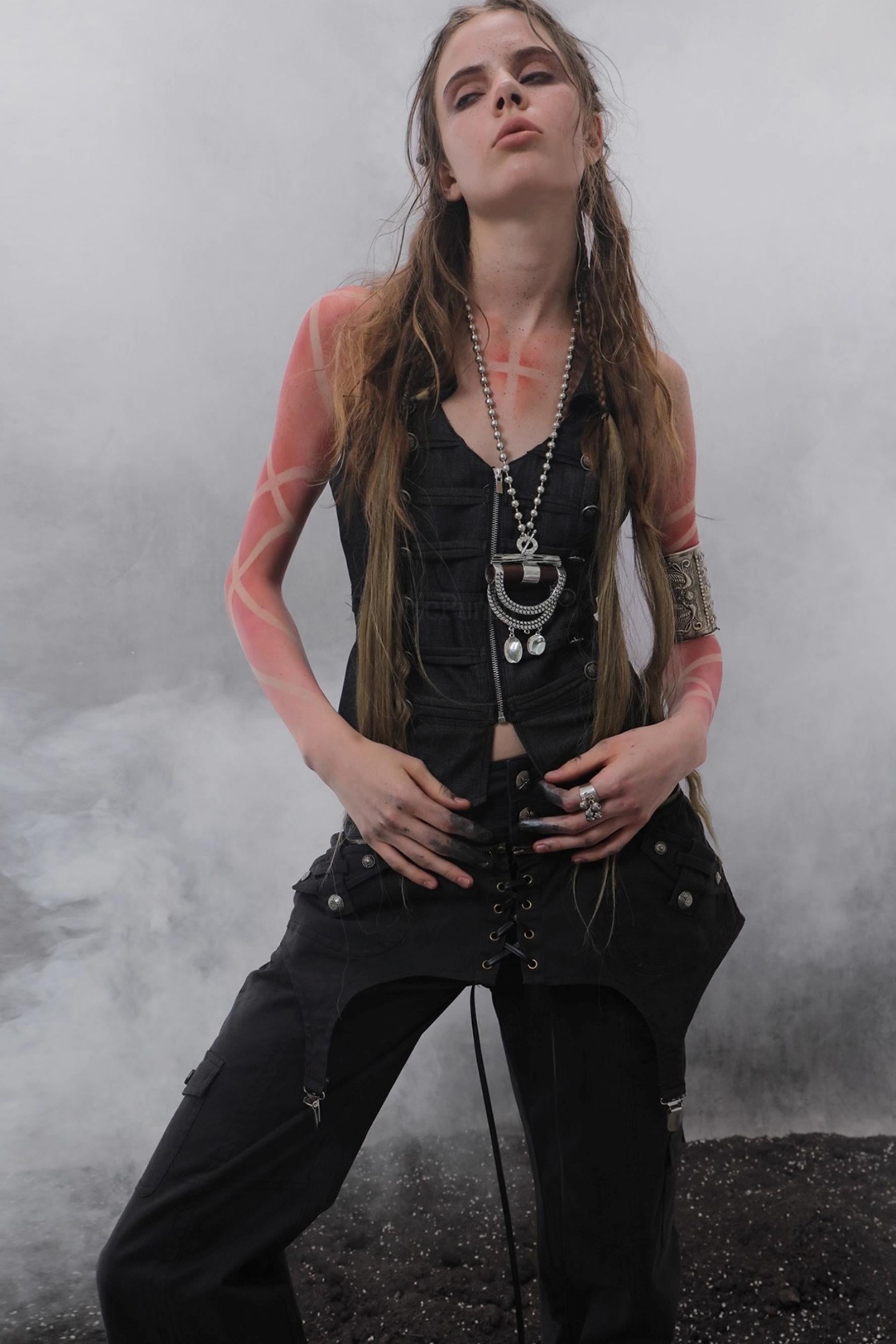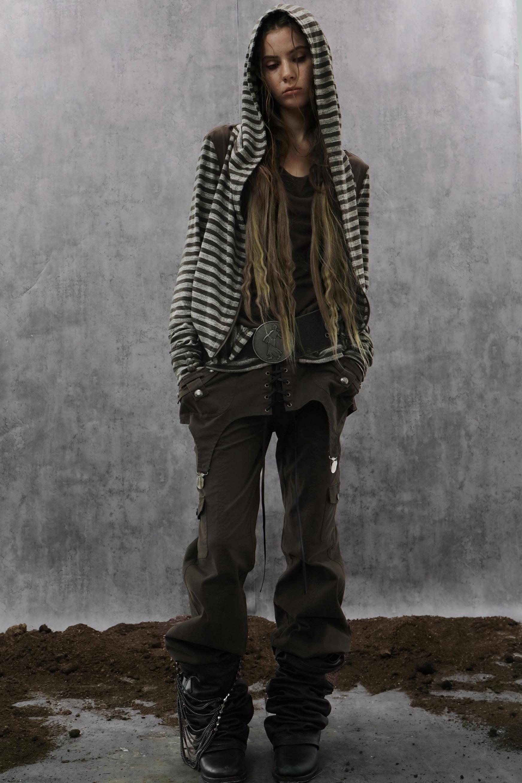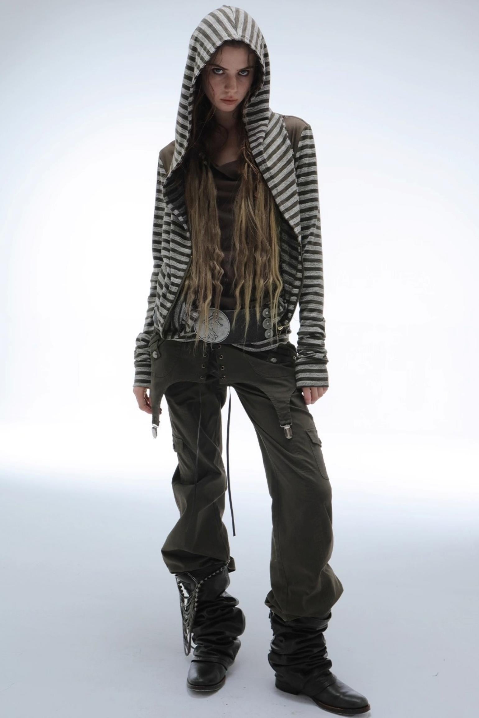 Layered Distressed Straight Cargo Pants