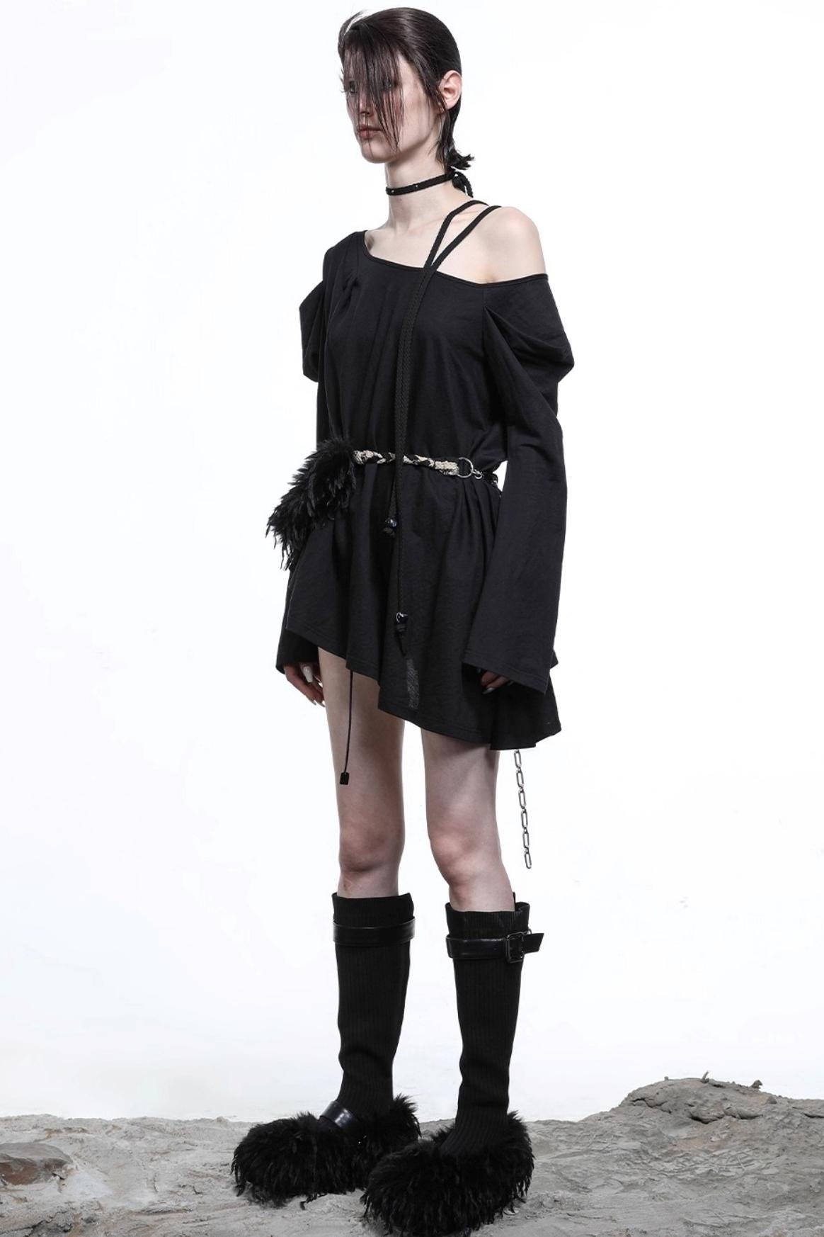 The translations for "collar circumference" and "shoulder strap" are "领口拉通" and "肩带", respectively.