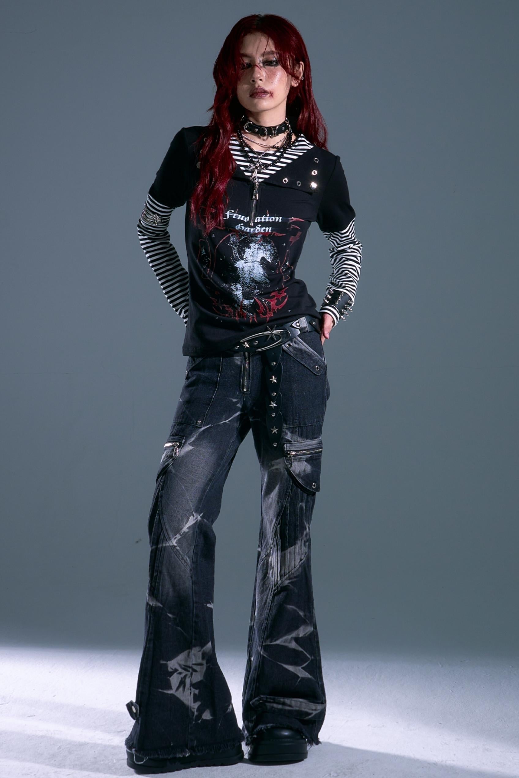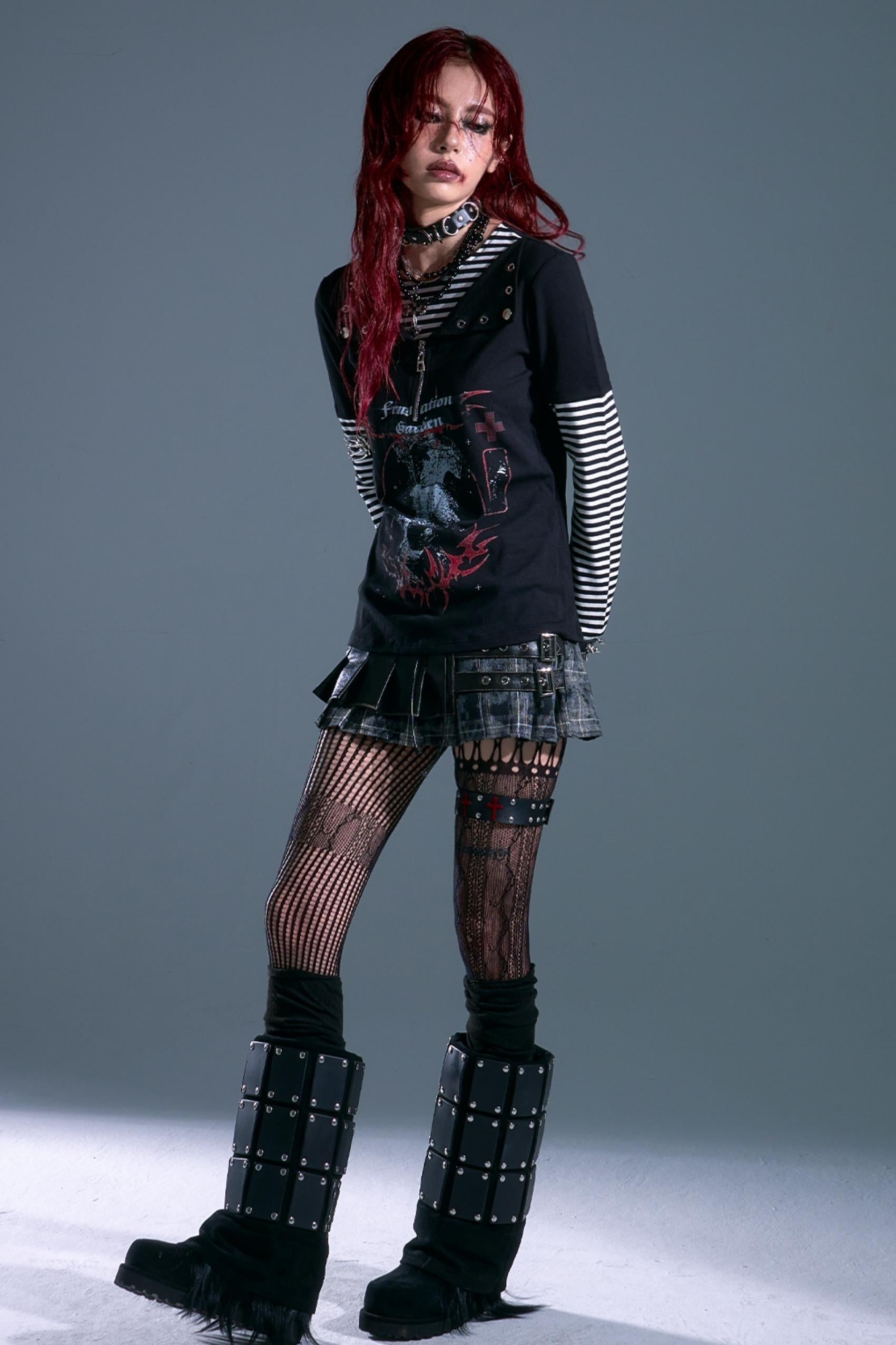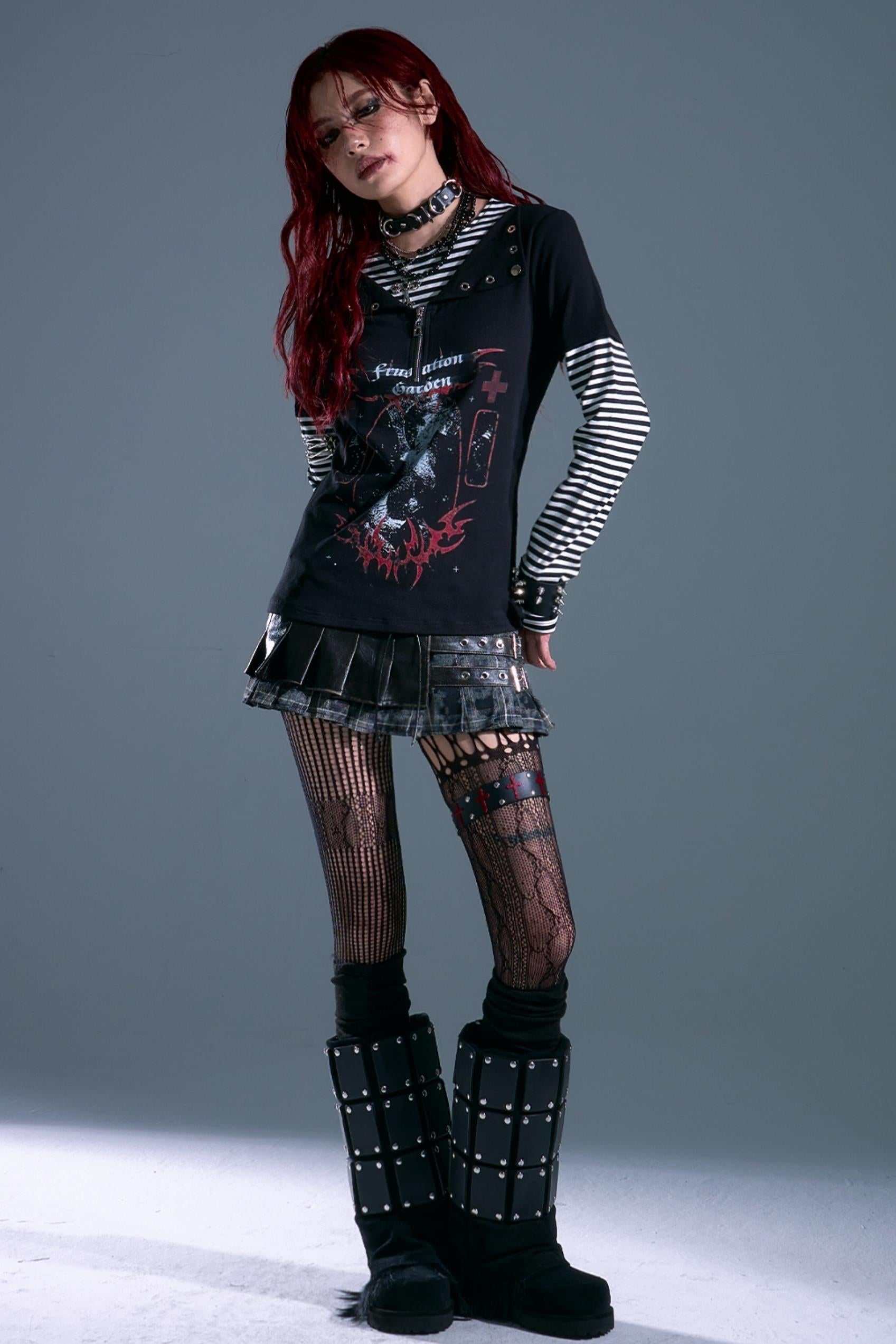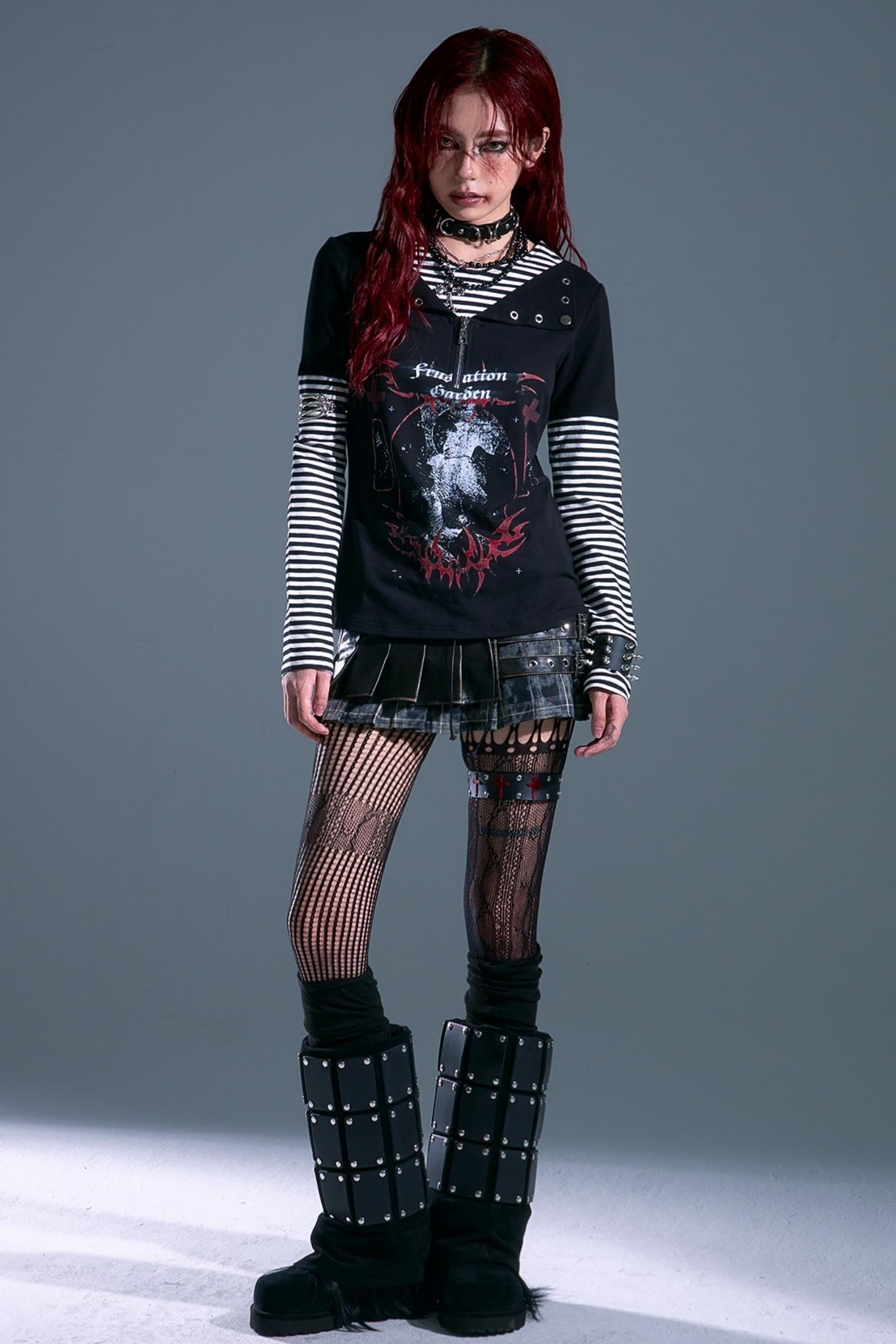 Punk Street Striped Print Long Sleeve Top