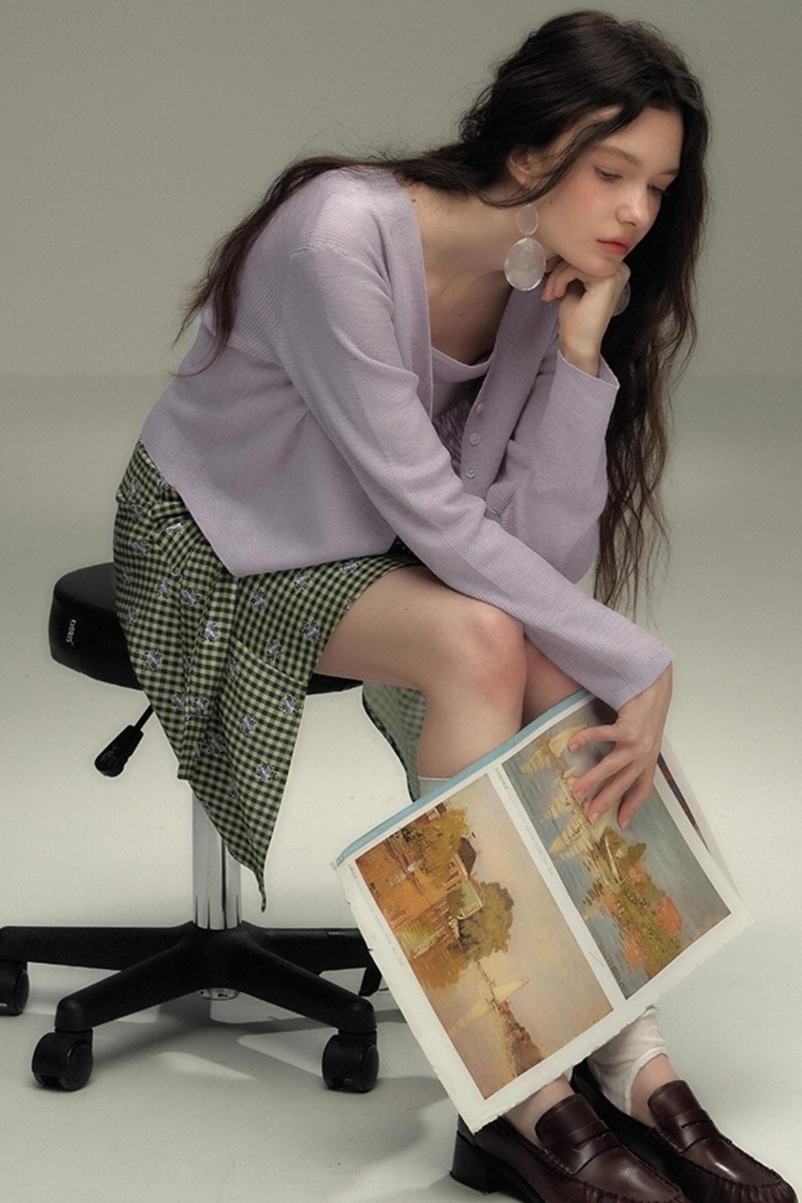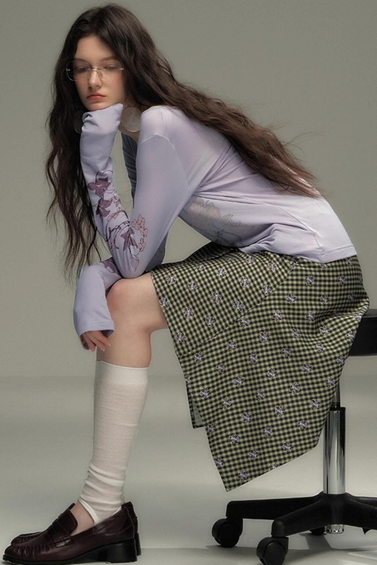 Retro Green Check Lace-Up Skirt