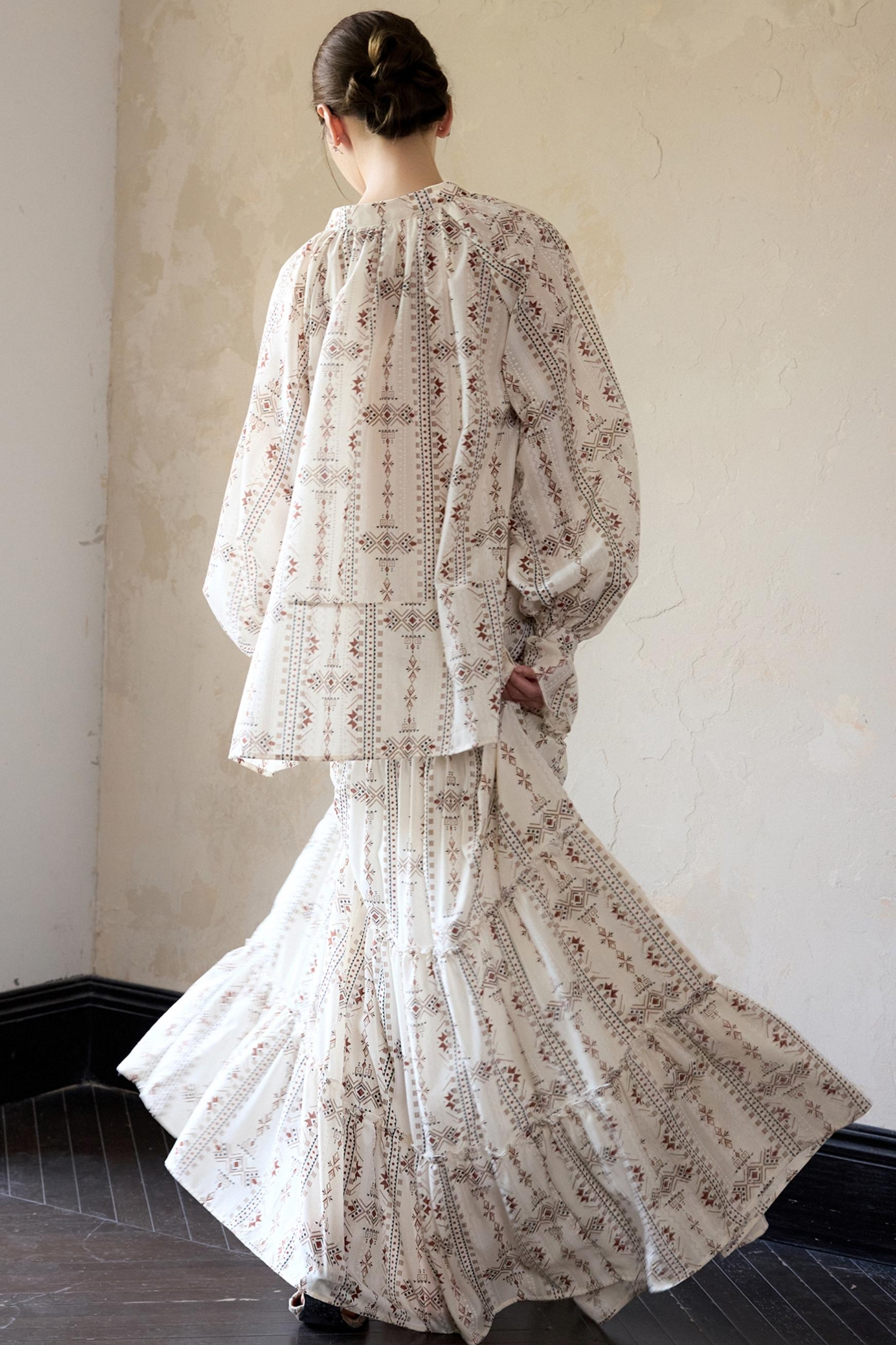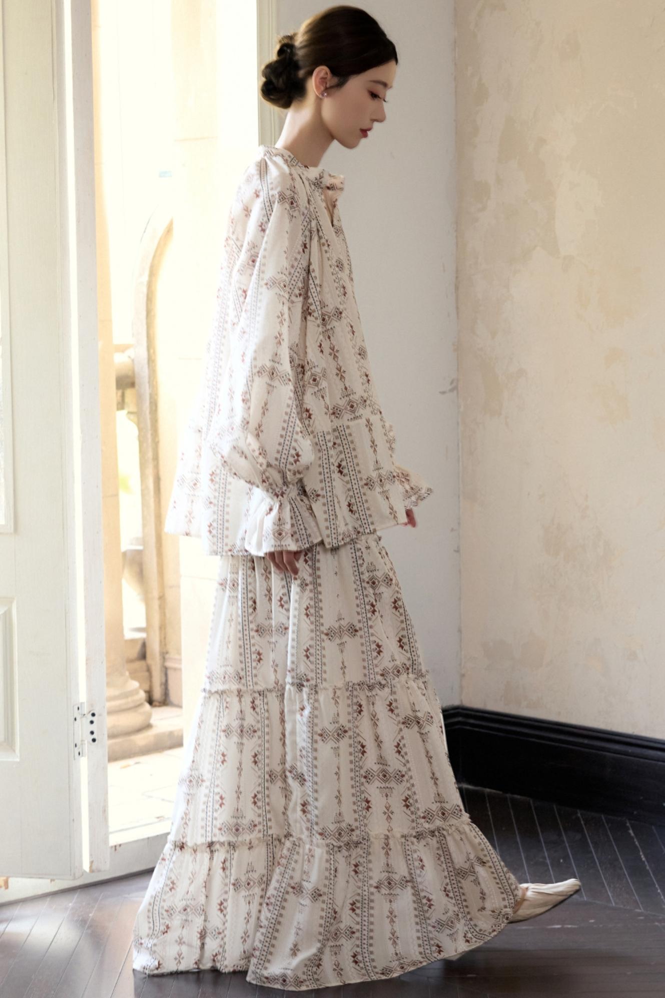 Romantic Ethnic Printed V-Neck Pullover Shirt