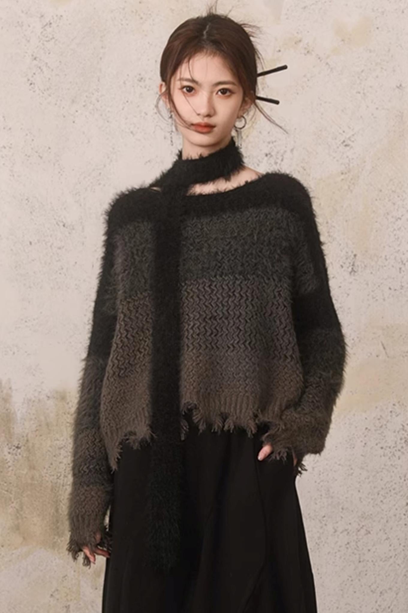 Süßes cooles gestreiftes gestricktes Pullover-Schal-Set