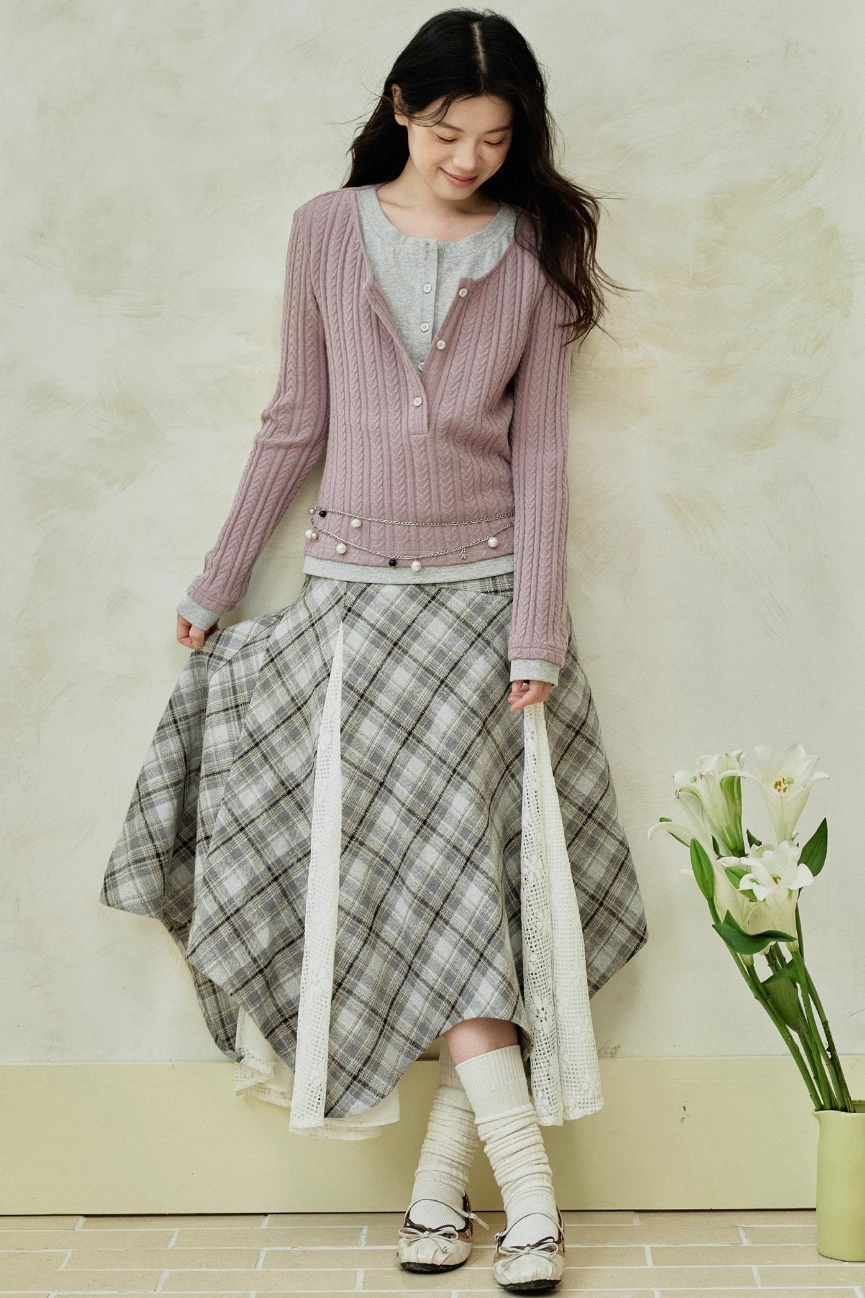 Yellow Purple Knitted Long-Sleeved Tops