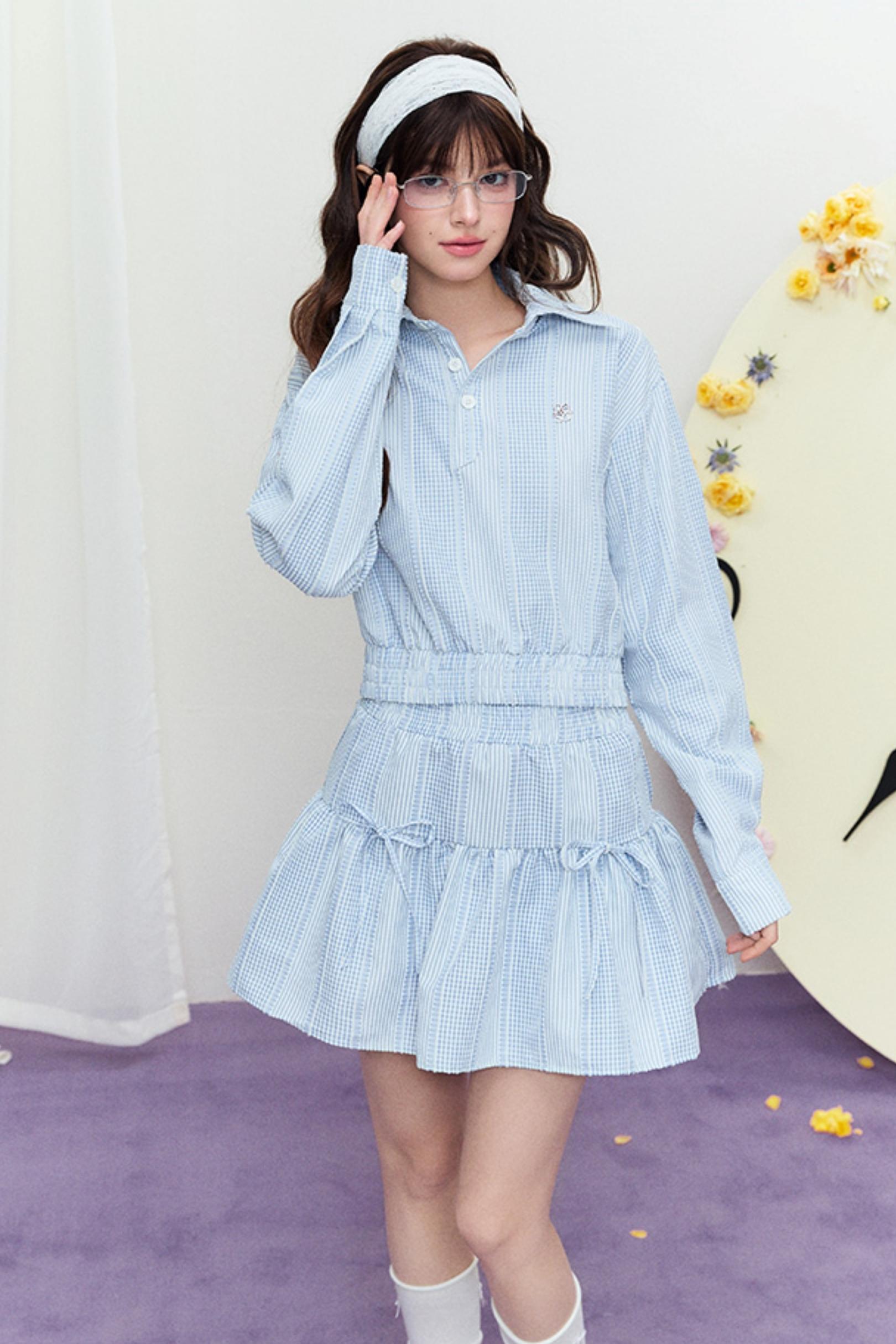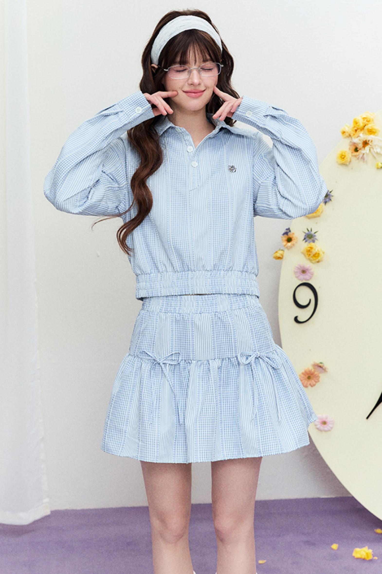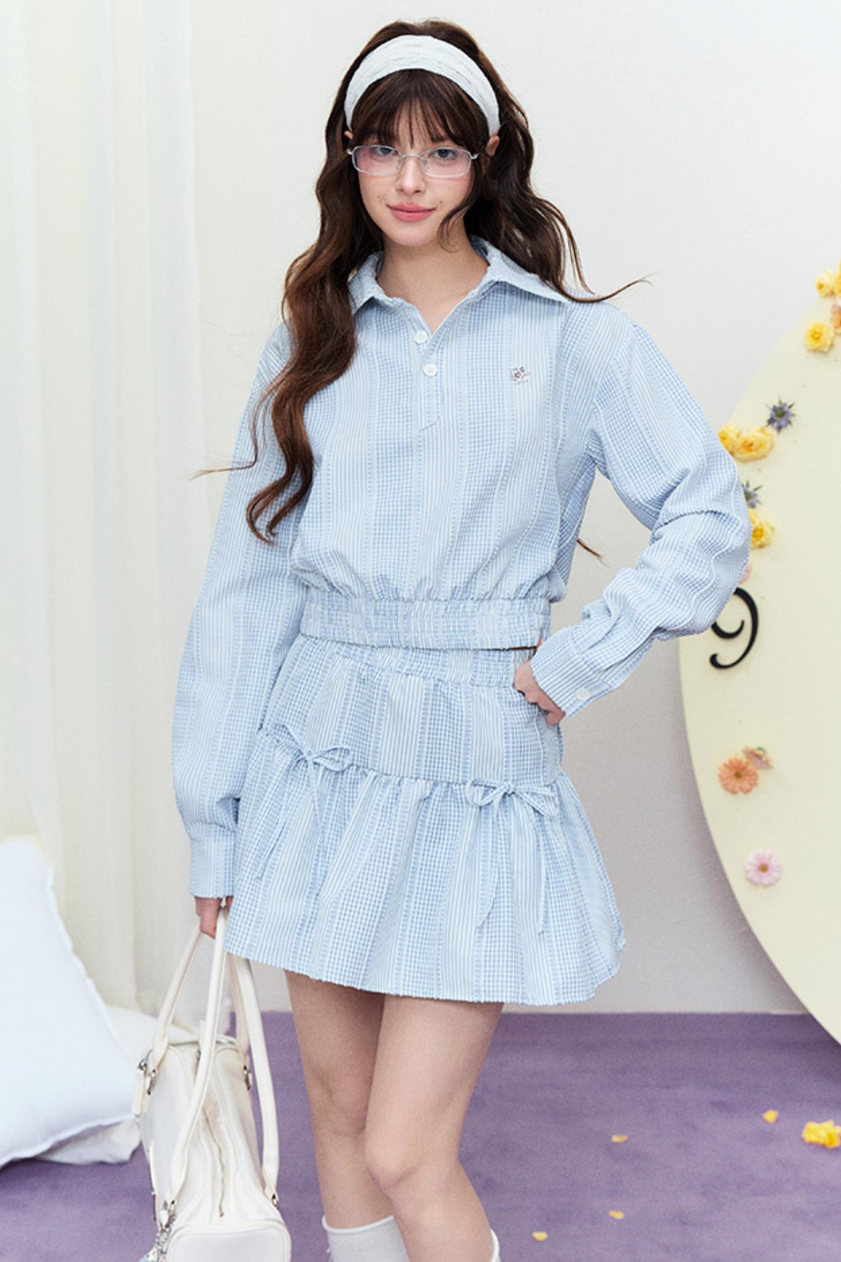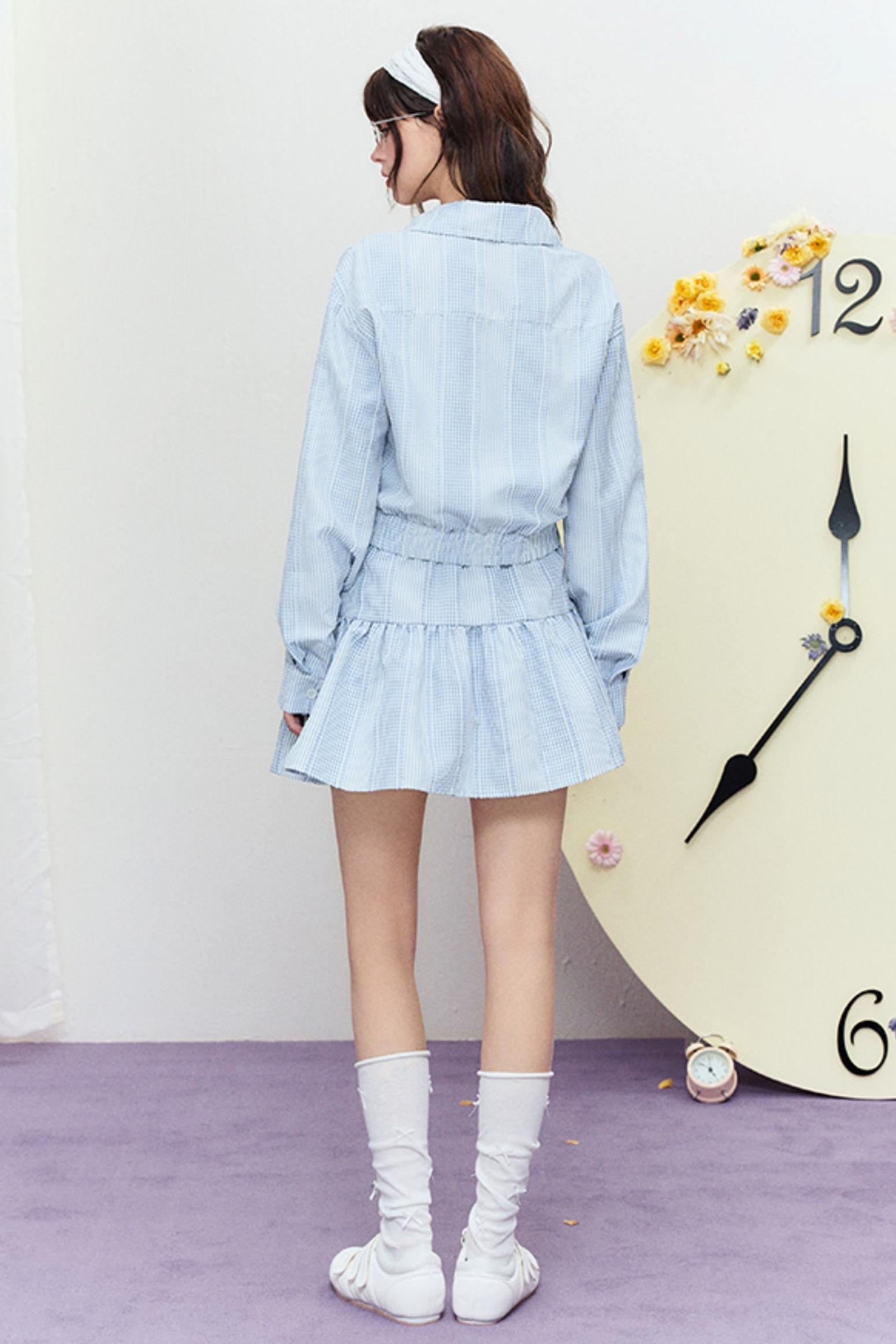 Zweiteiliger gestreifter Frühlingsanzug mit Regenschirmrock