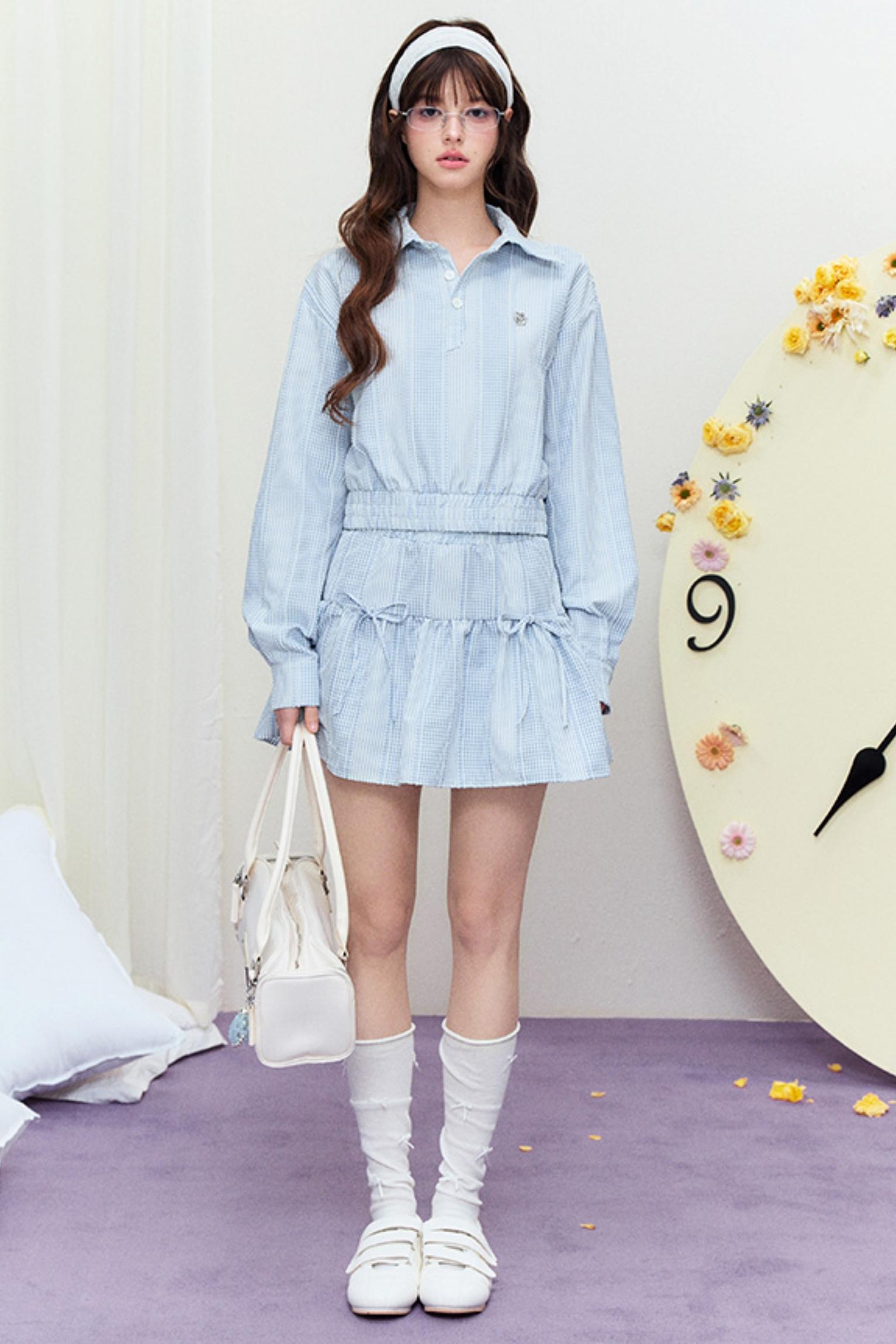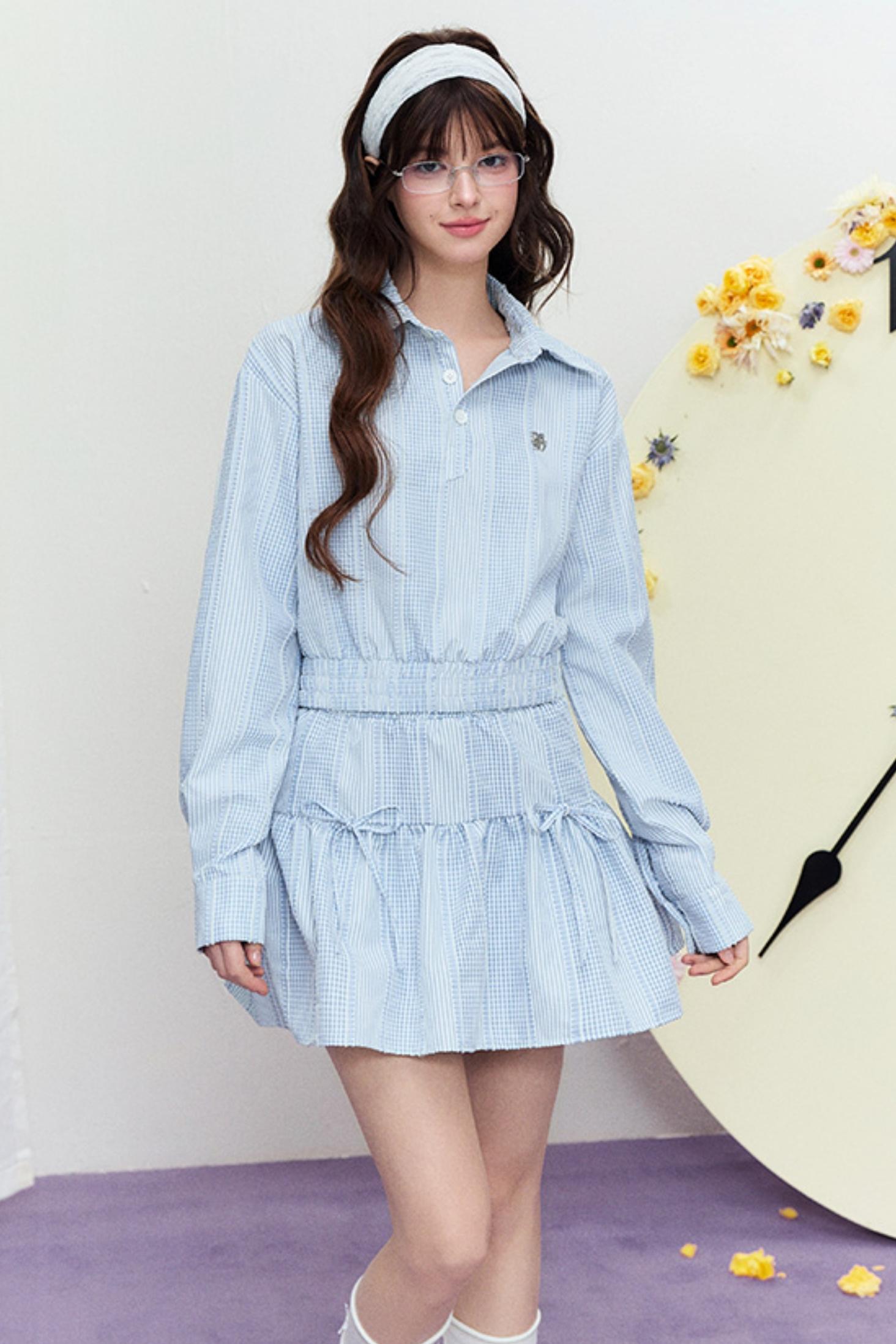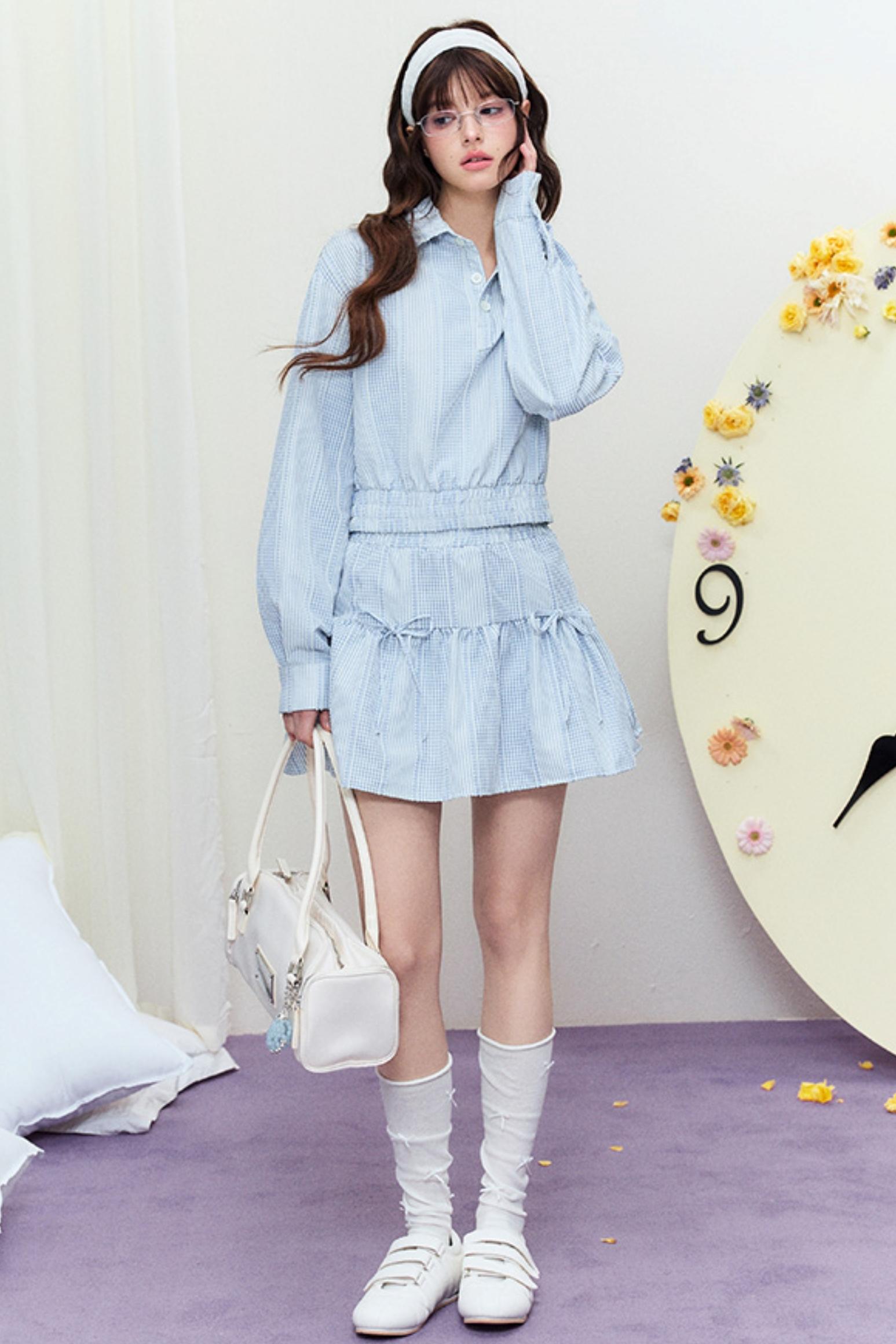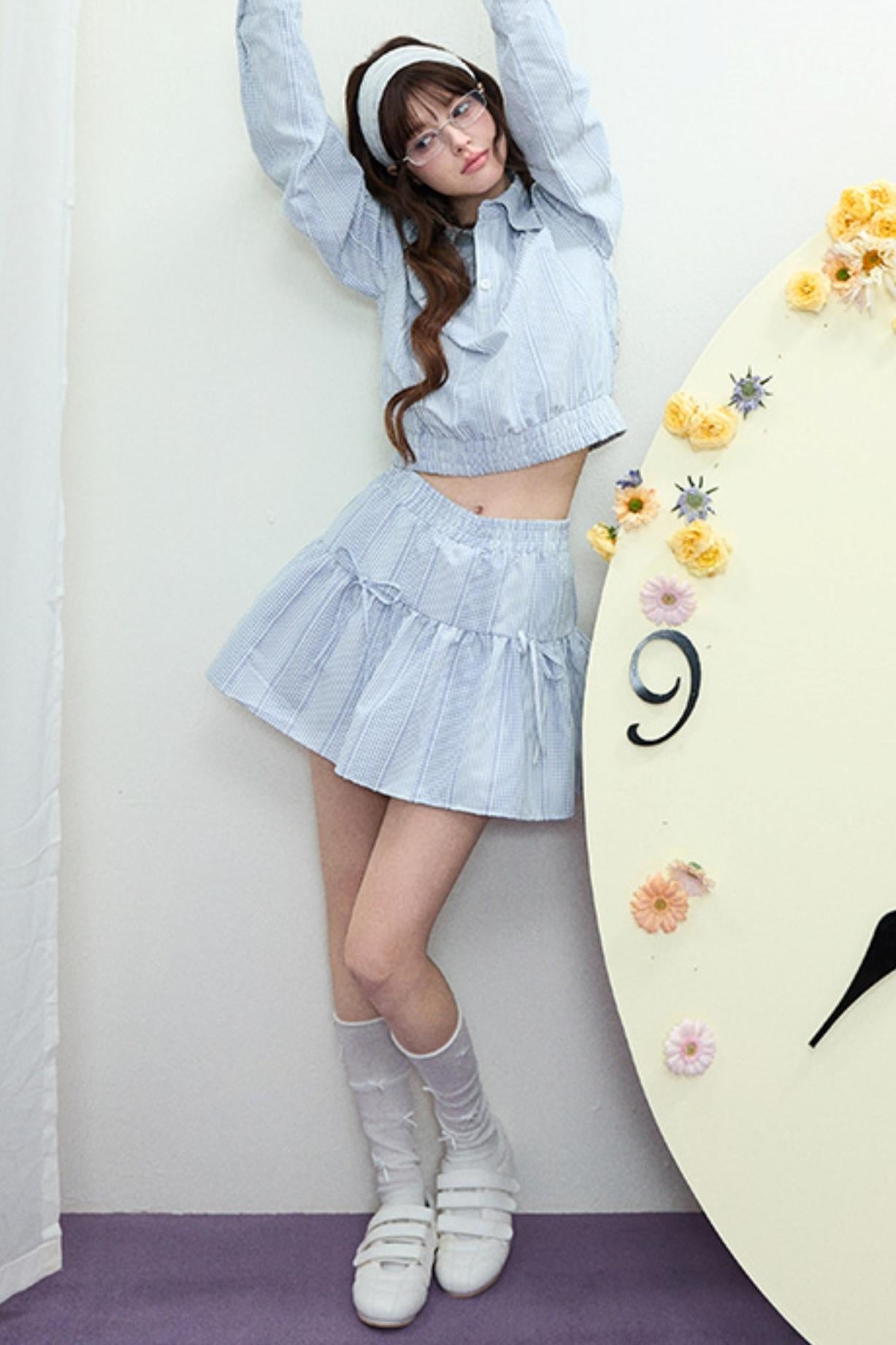 Zweiteiliger gestreifter Frühlingsanzug mit Regenschirmrock