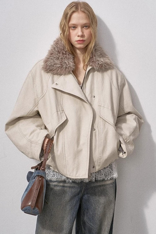 Curved Sleeve Fur Collar Jacket