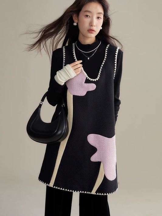 Contrast panelled tweed vest tops