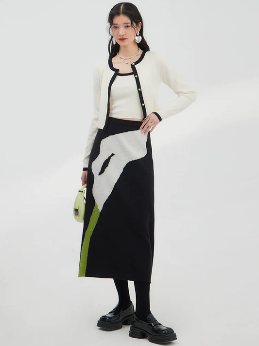 BellaModa contrast knit sweater skirt set
