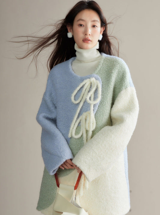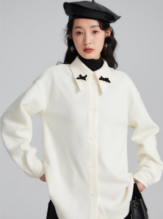 Contrasting bow Pre-Fall texture shirt