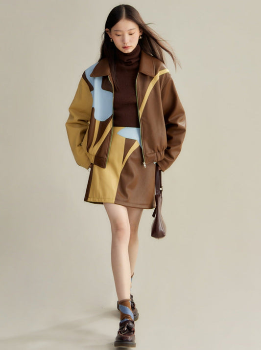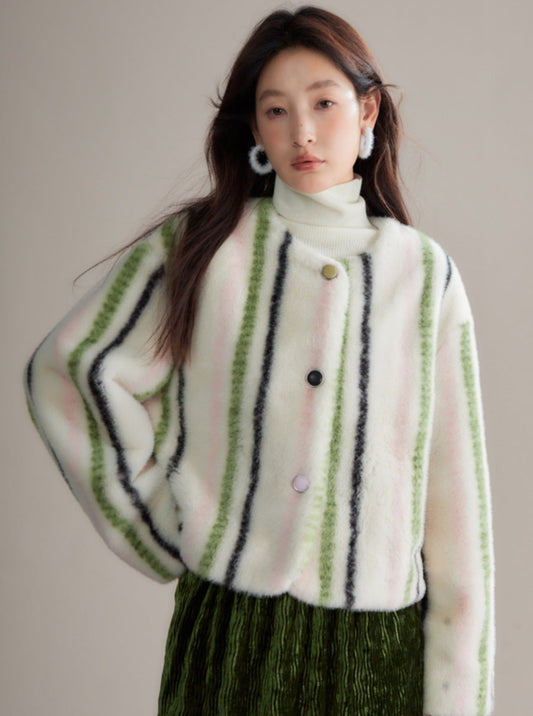 contrasting crewneck fur short coat