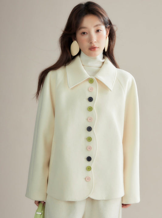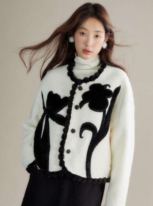 Contrasting peony diagonal placket wool tops