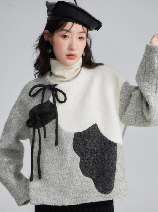 Chinese style woolen top