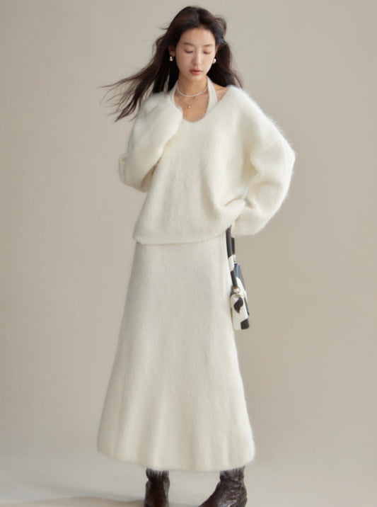 Pullover sweater halterneck dress set