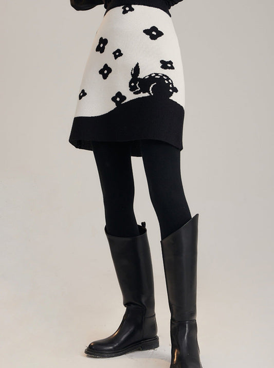 Jacquard wool rabbit retro A-line skirt