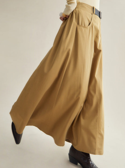 Midi high-waisted belted A-line skirt