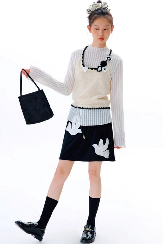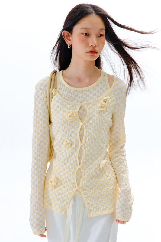 Three-Dimensional Flower Bubble Texture Knitted Vest Set