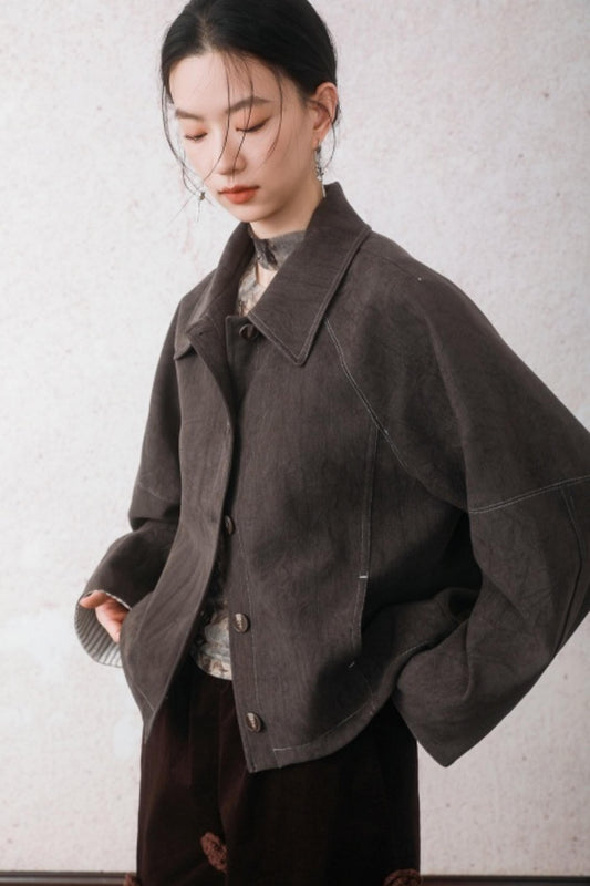 Elegant Gray-Brown Plush Jacket