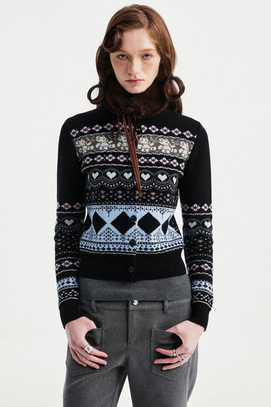 Retro Bear Jacquard Wool Cardigan