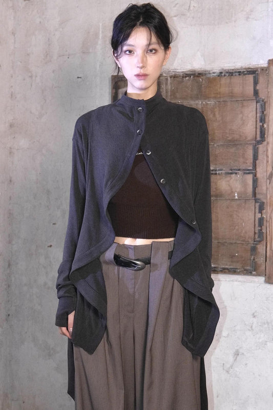 Curved Berry Brown Plush Jacket