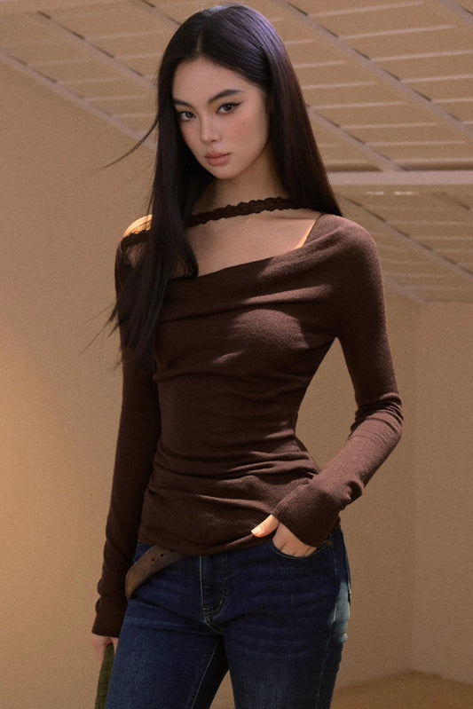 Cocoa Brown Half-Turtleneck Top