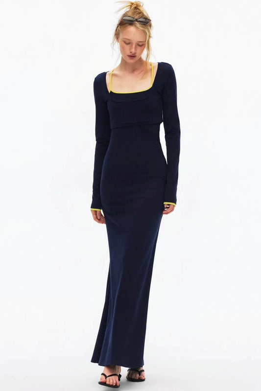 Knitted Color-Blocked Dress & Top Set-Up