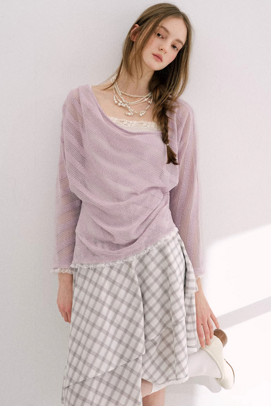 Irregular Taro Purple Knit Top Matching Set