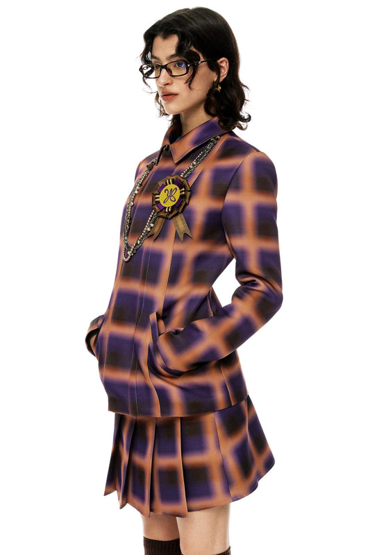 Patchwork Plaid Embroidered Top & Skirt Set-Up