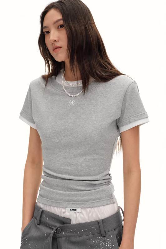 Color-Block Ruched Slim Tee