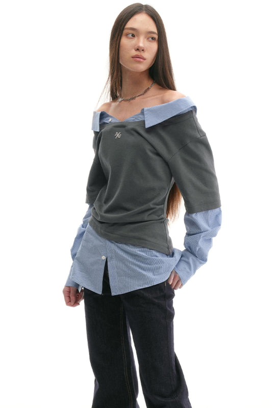 Color-Block Off-Shoulder Knit Top