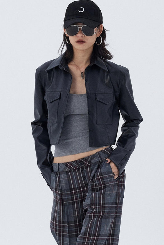 Cropped Slim Fit Leather Jacket