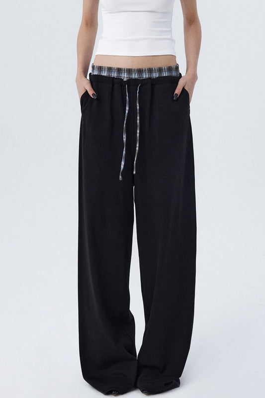 Contrast Check Pattern Wide Pants