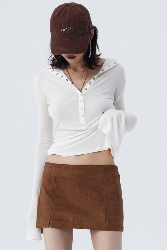 Caramel Split Suede Mini Skirt