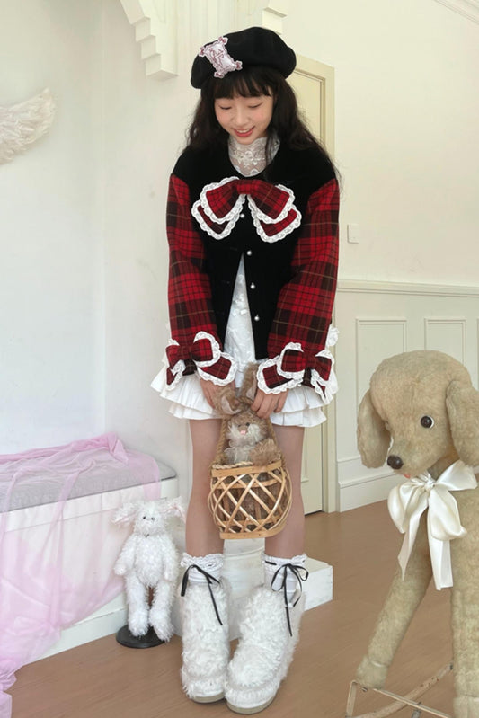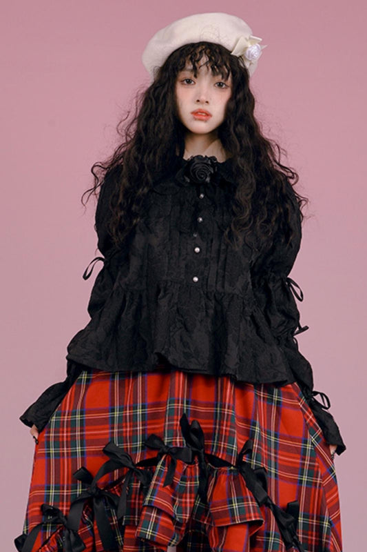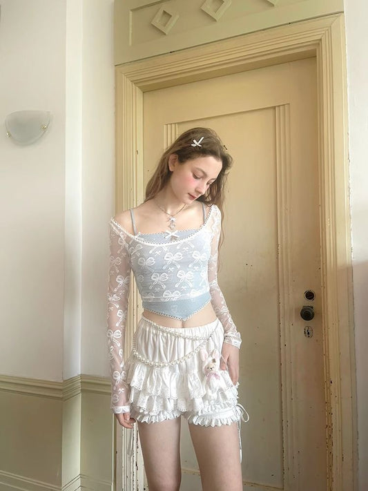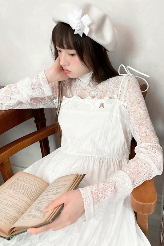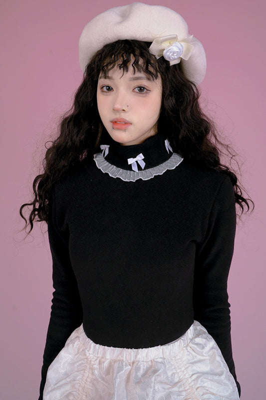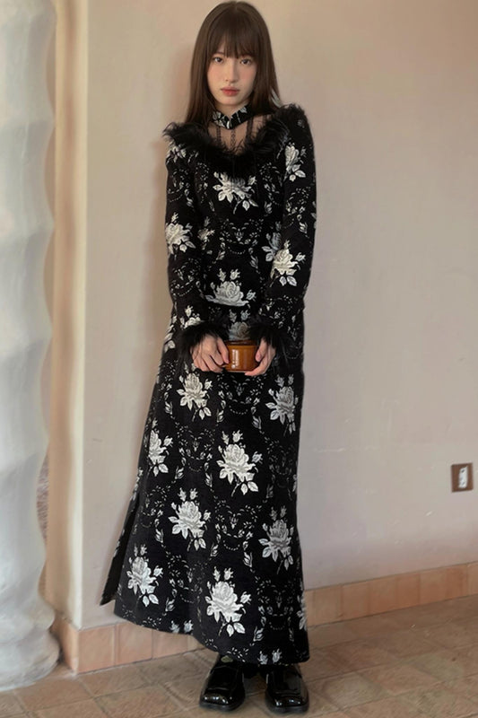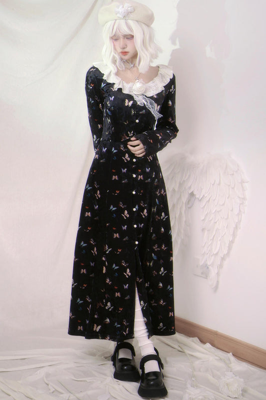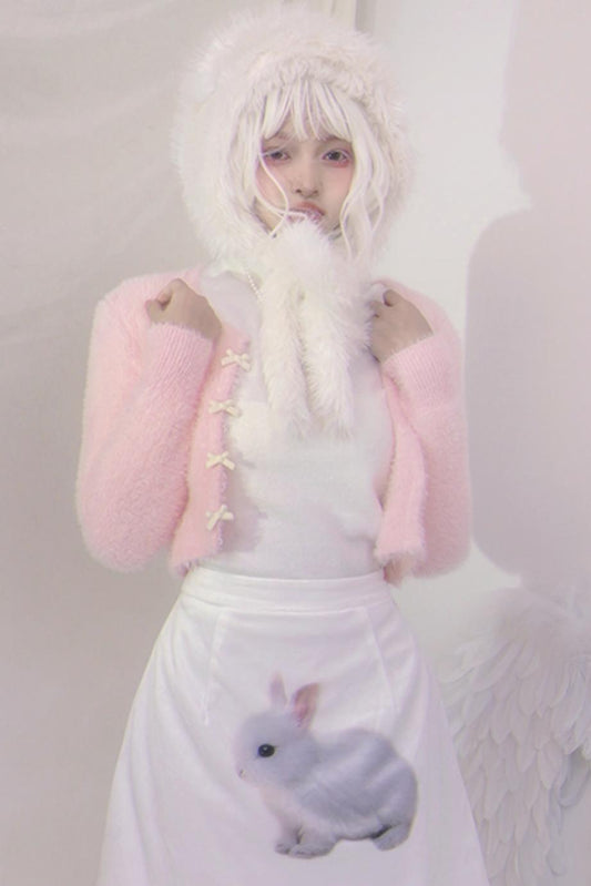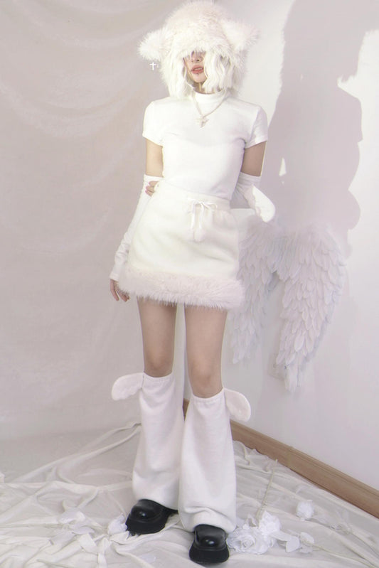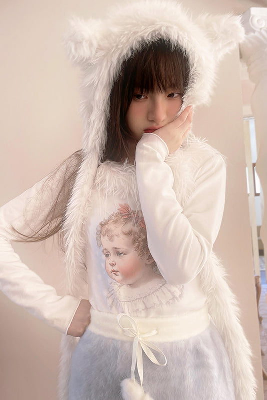 Vintage Angel Print Fur Collar Long Sleeve T-Shirt