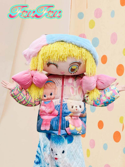 Retro Switching Printed Warm Down Jacket