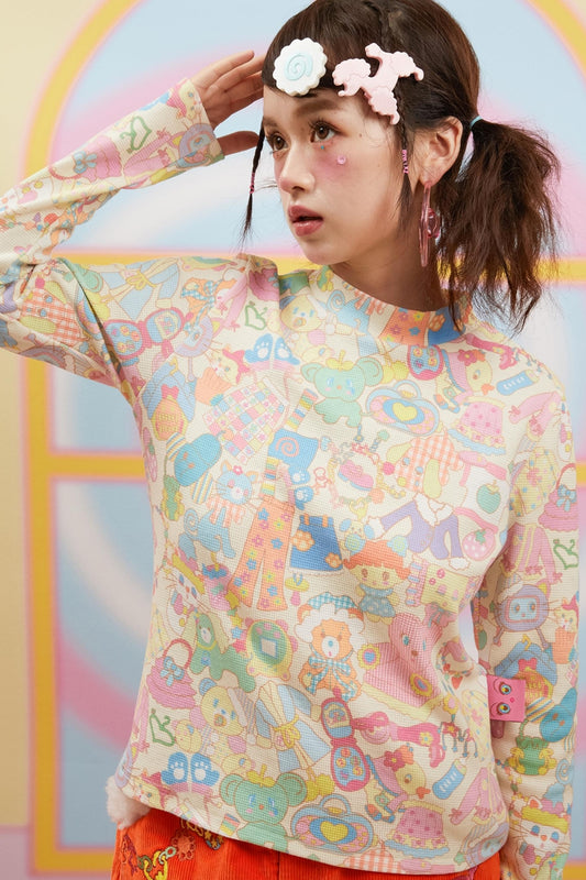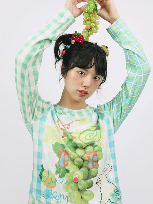 Plaid Grape Print Cute Long Sleeve T-Shirt