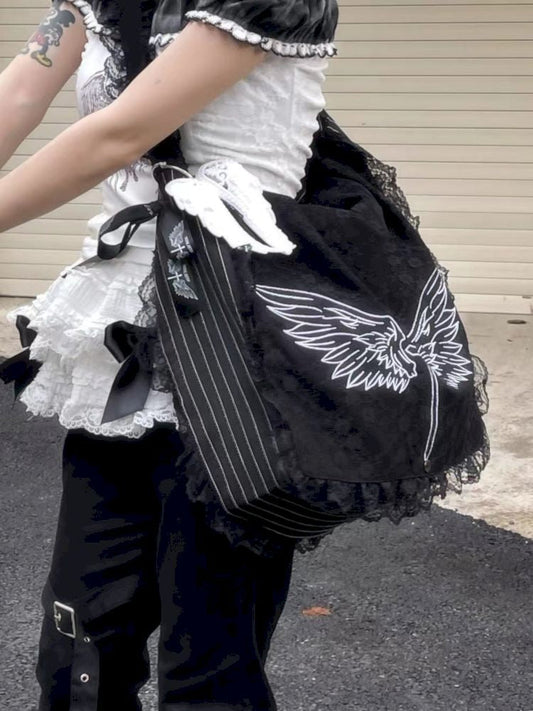 Lace Wings Embroidered Canvas Bag