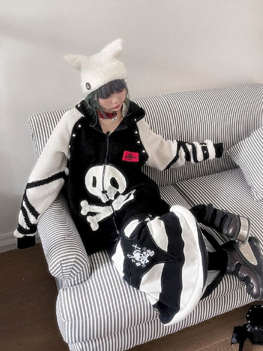 Skull Embroidered Fishbone Poncho Dress