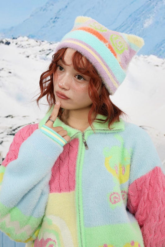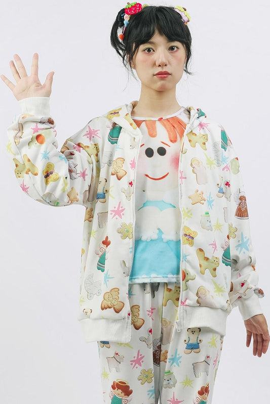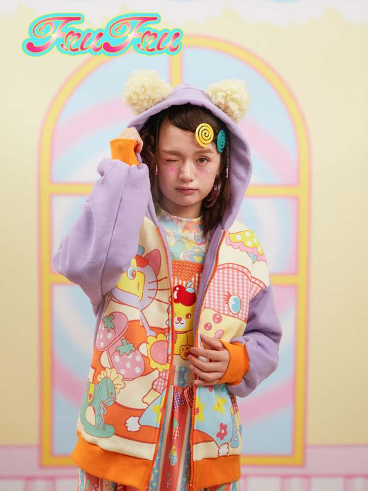 Cartoon Print Double-Sided Lamb Fleece Jacket