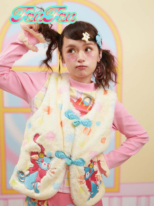 Cartoon Cat Embroidery Fluffy Plush Vest