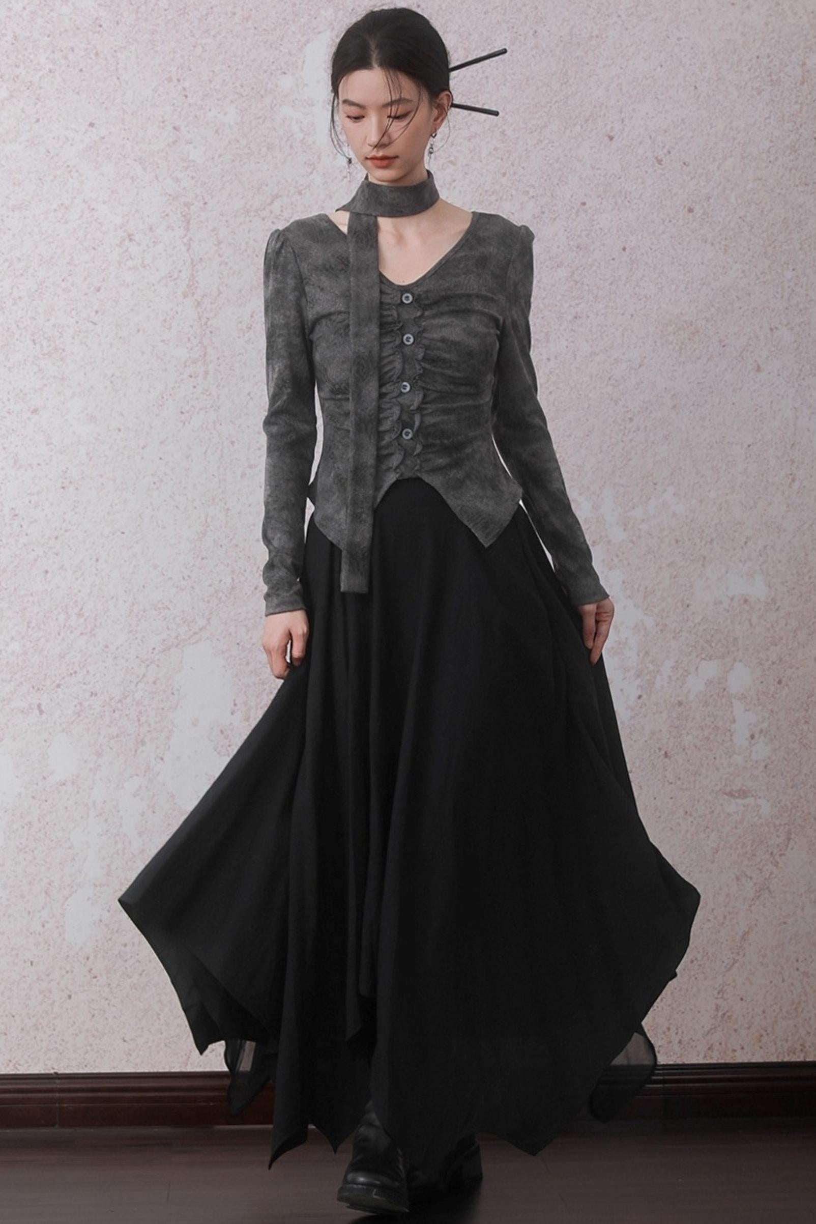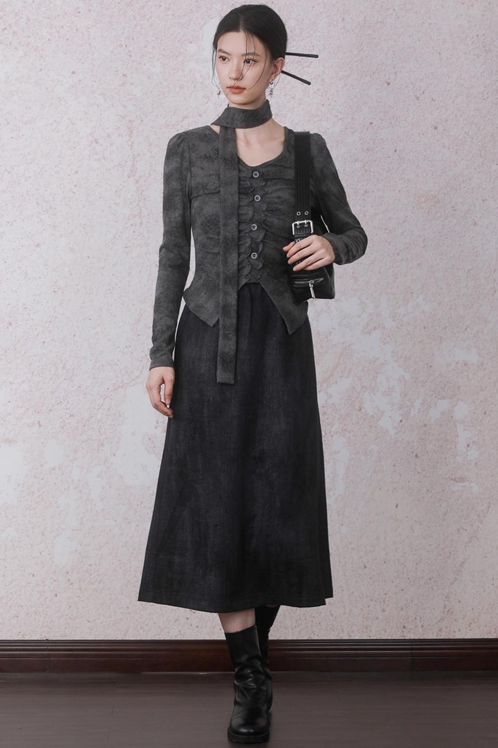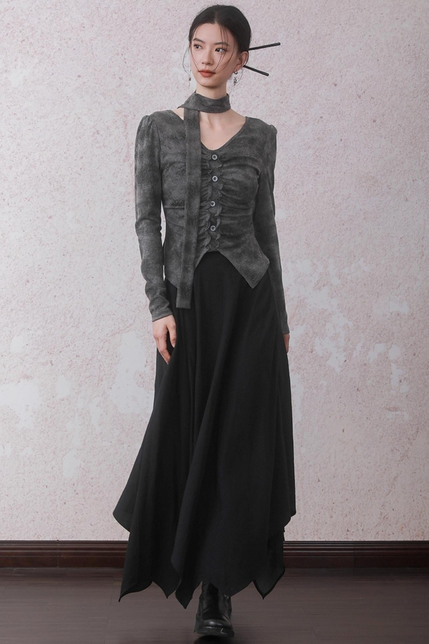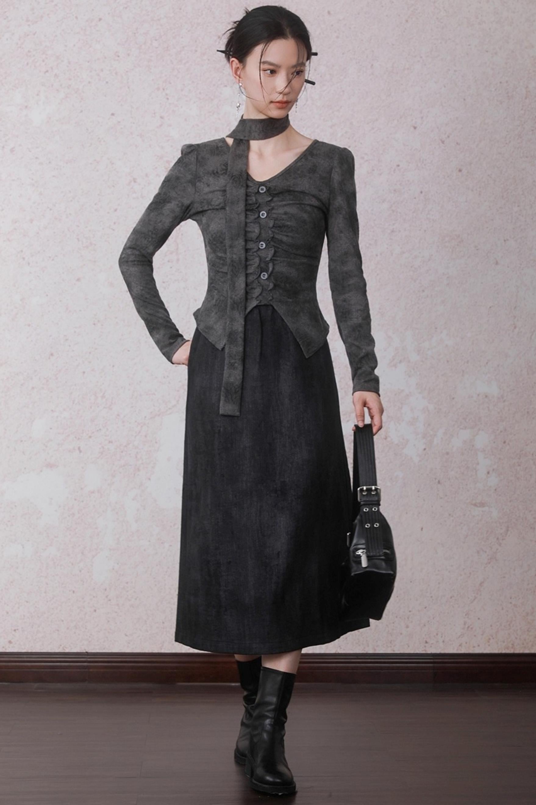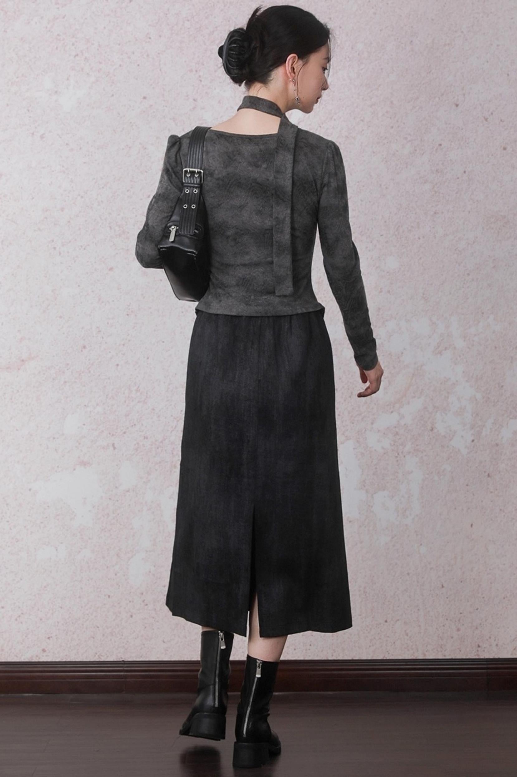Autumn Gray Tie-dye Knitted V-Neck T-Shirt