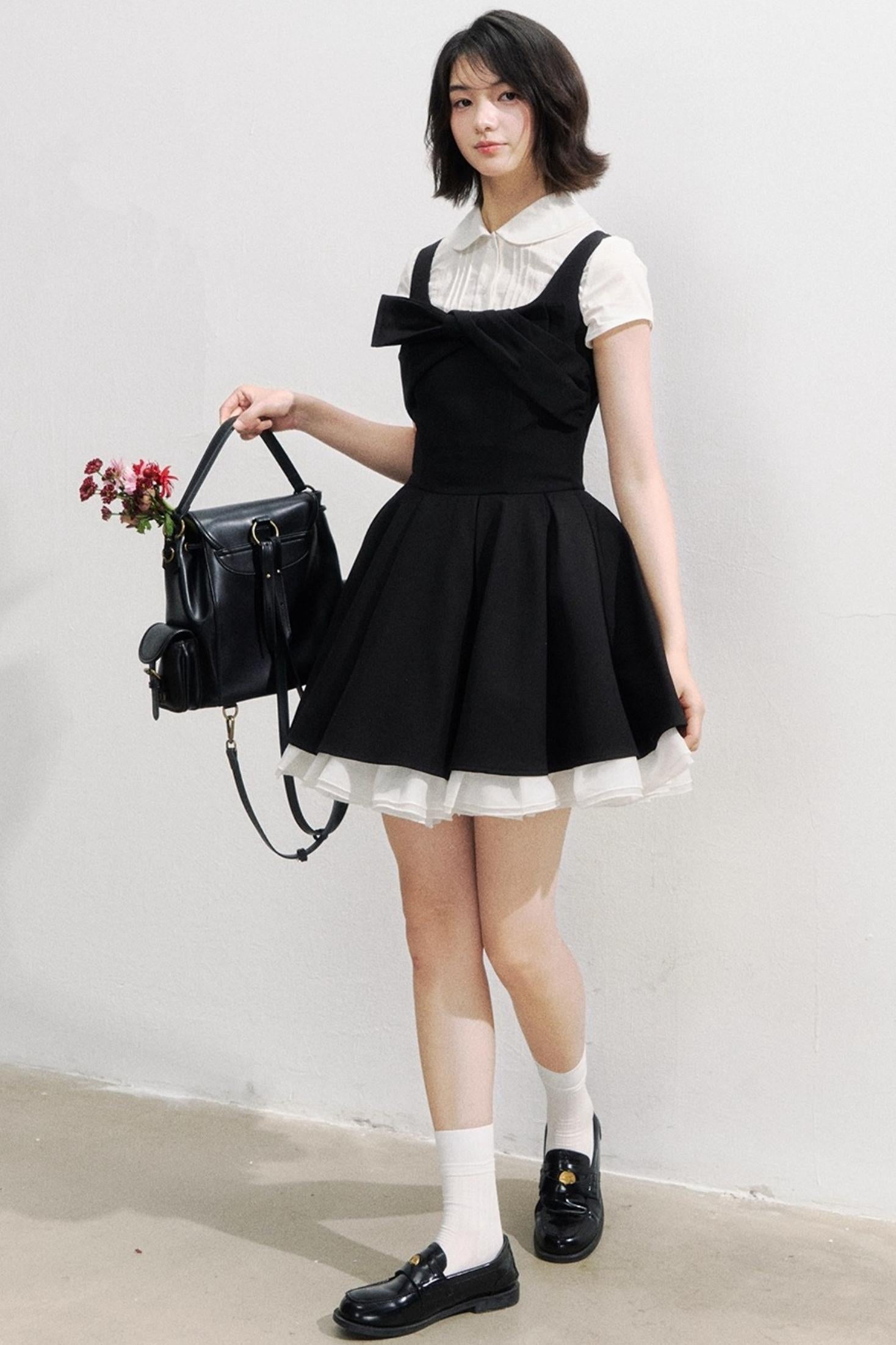 Black Bow Puffy Dress