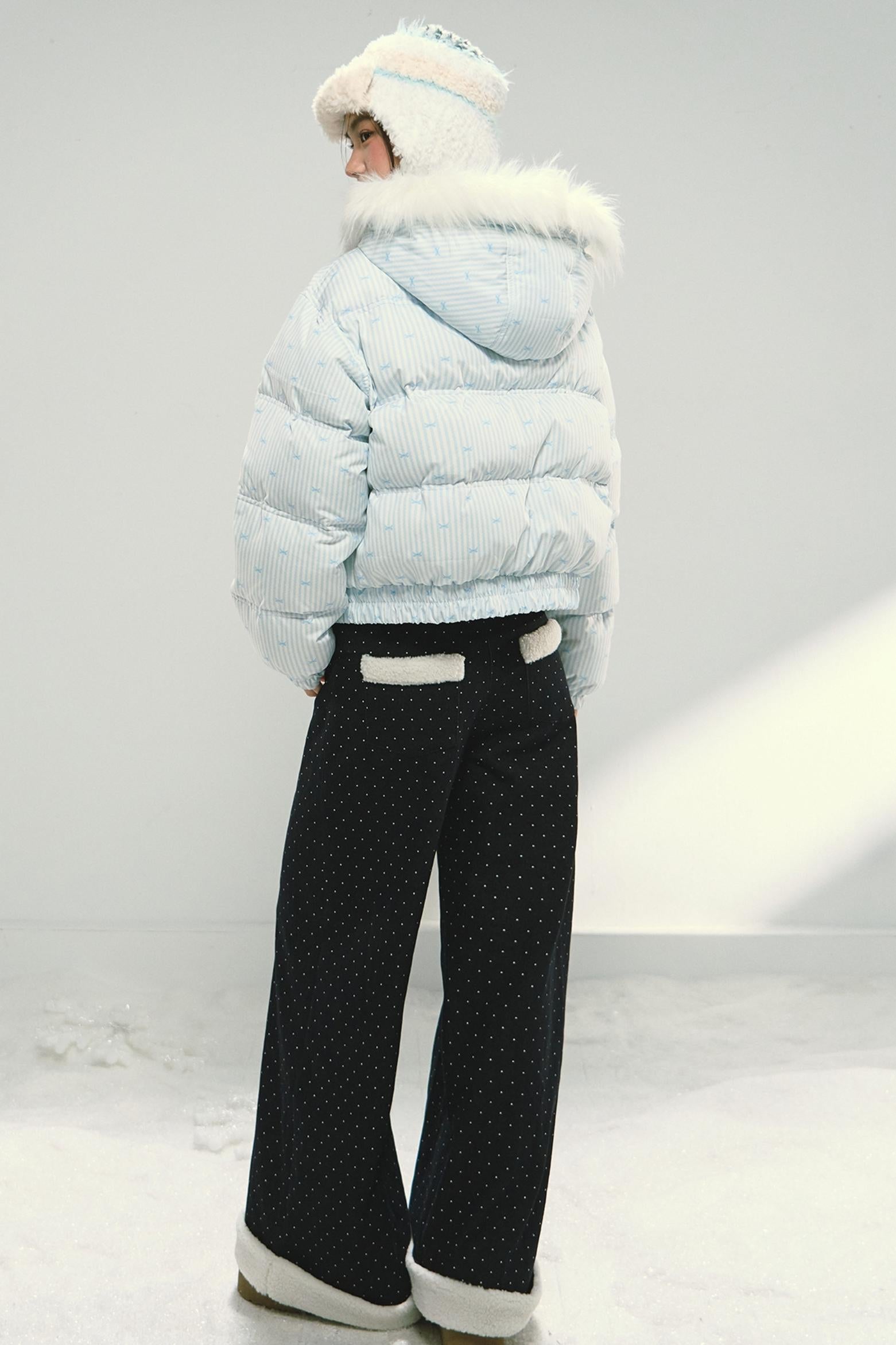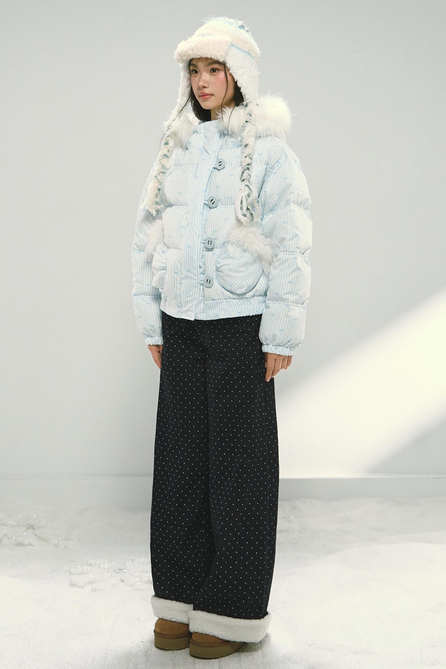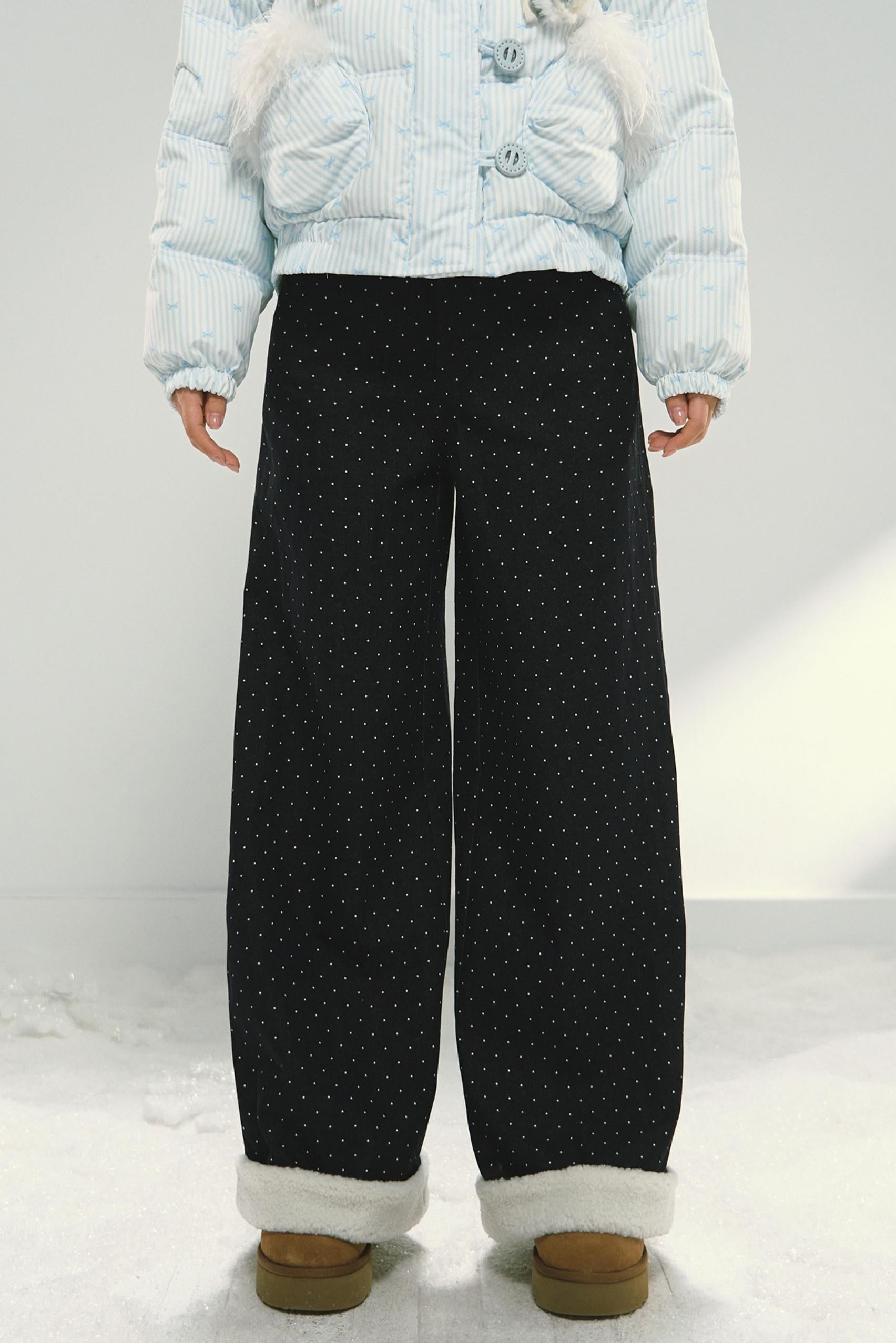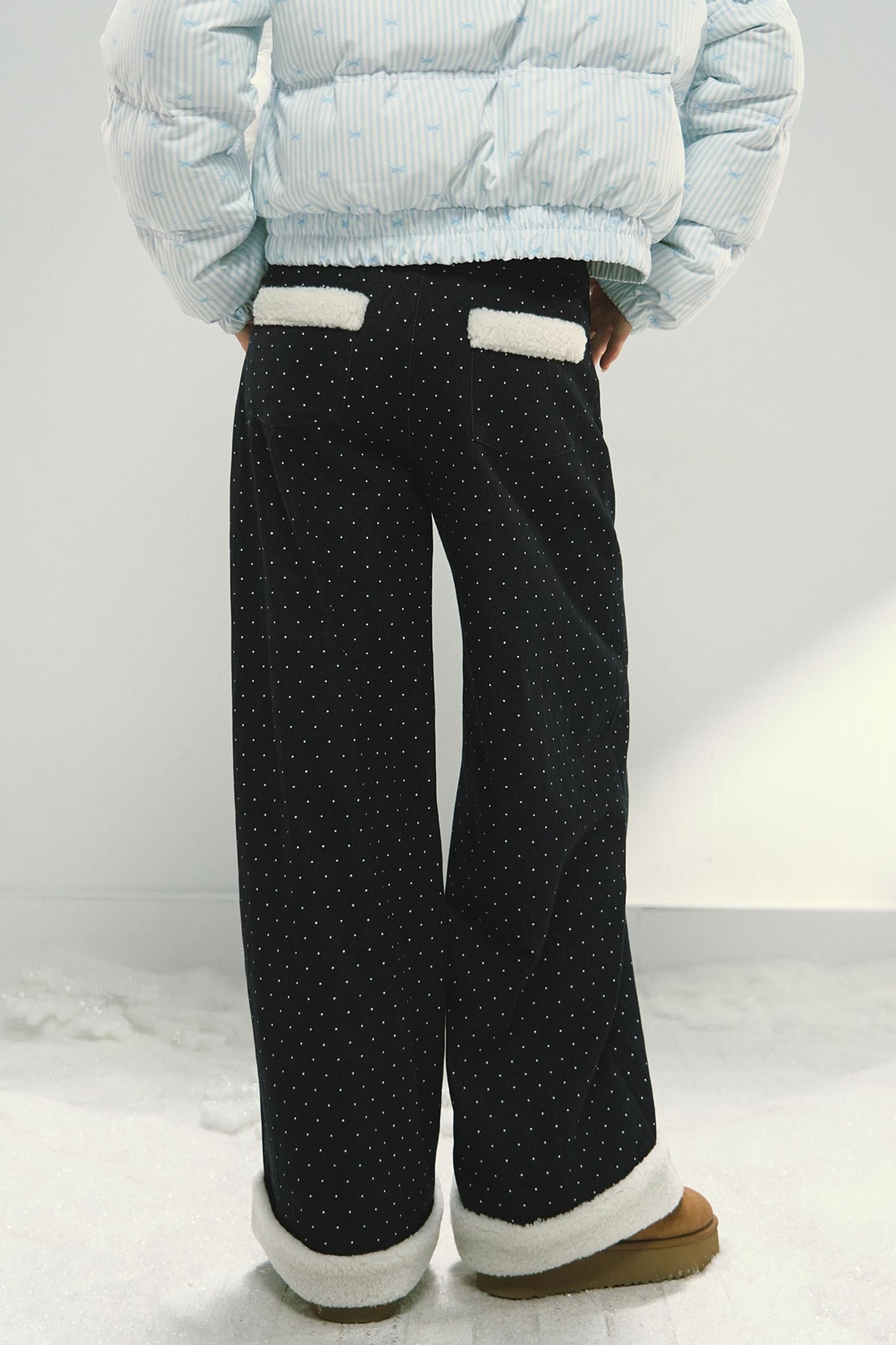 Blue Polka Dot Wide-Leg Jeans Pants