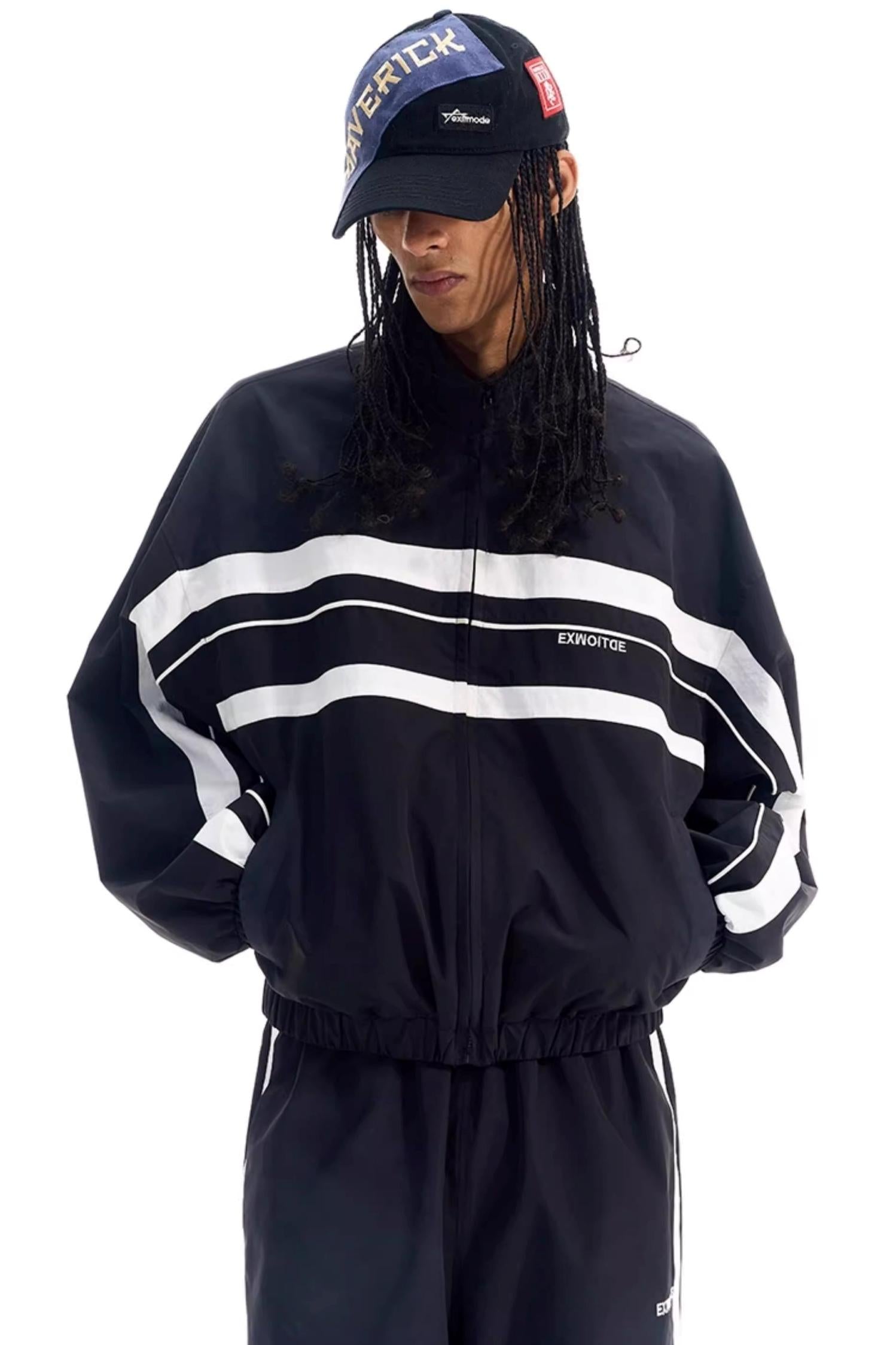 Color-Blocked Distressed Sports Jacket
