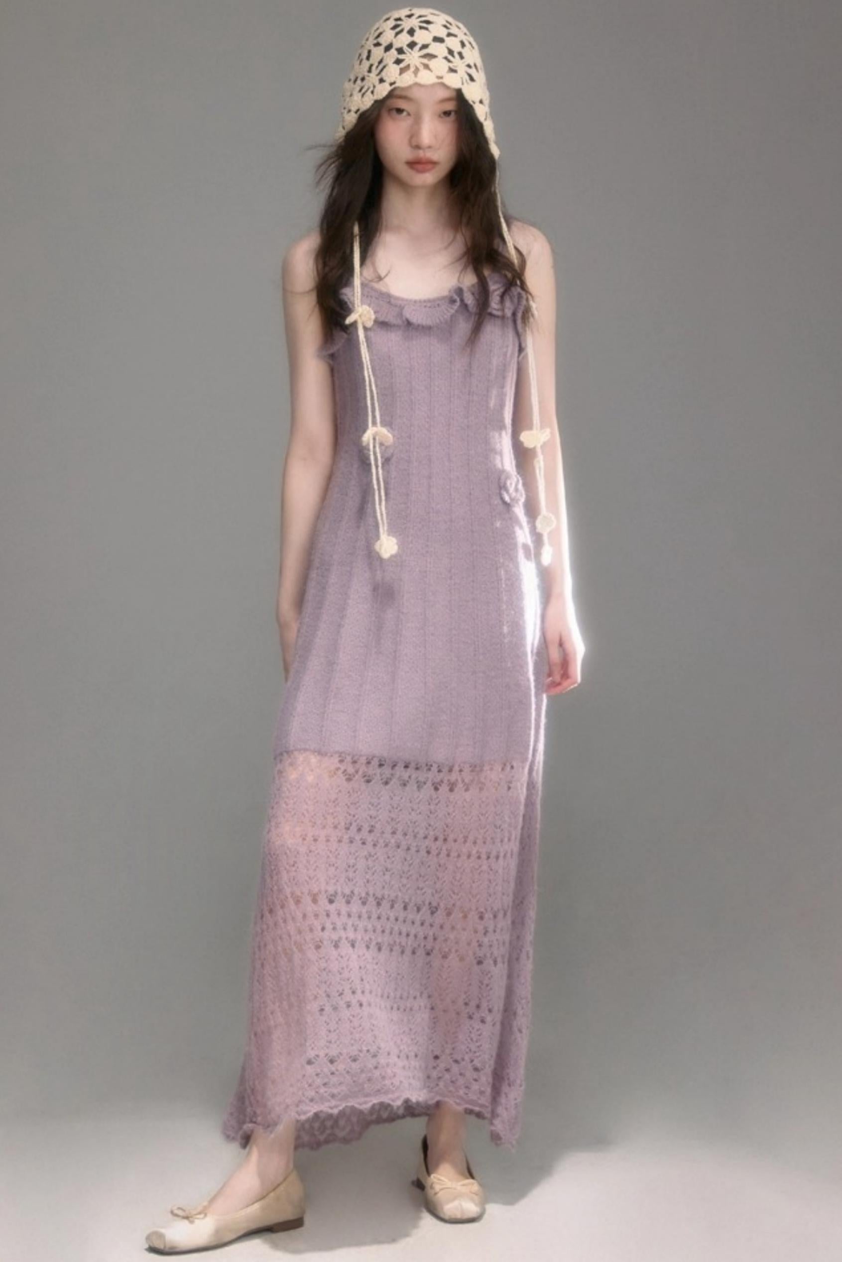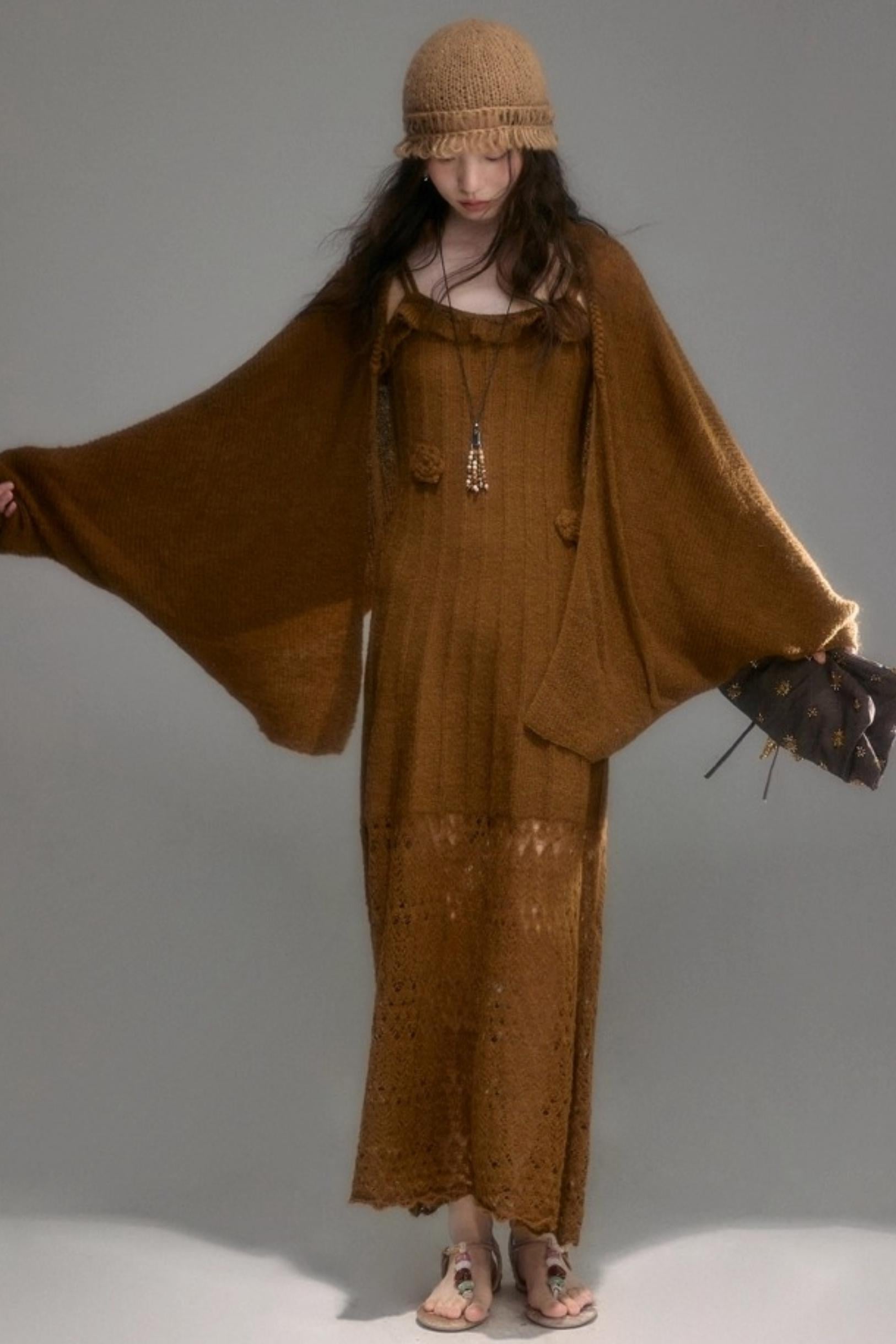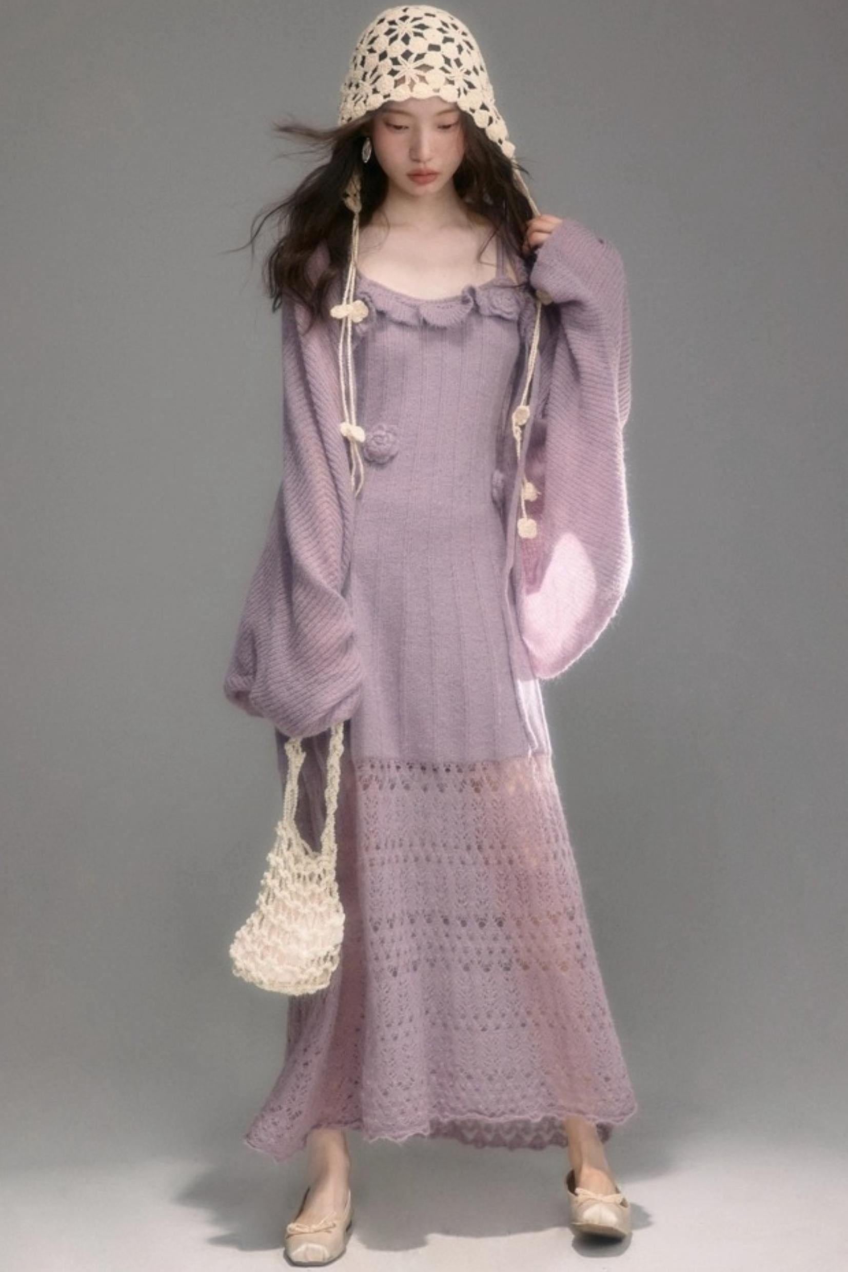 Crochet Knit Camisole Dress Cardigan Set-Up