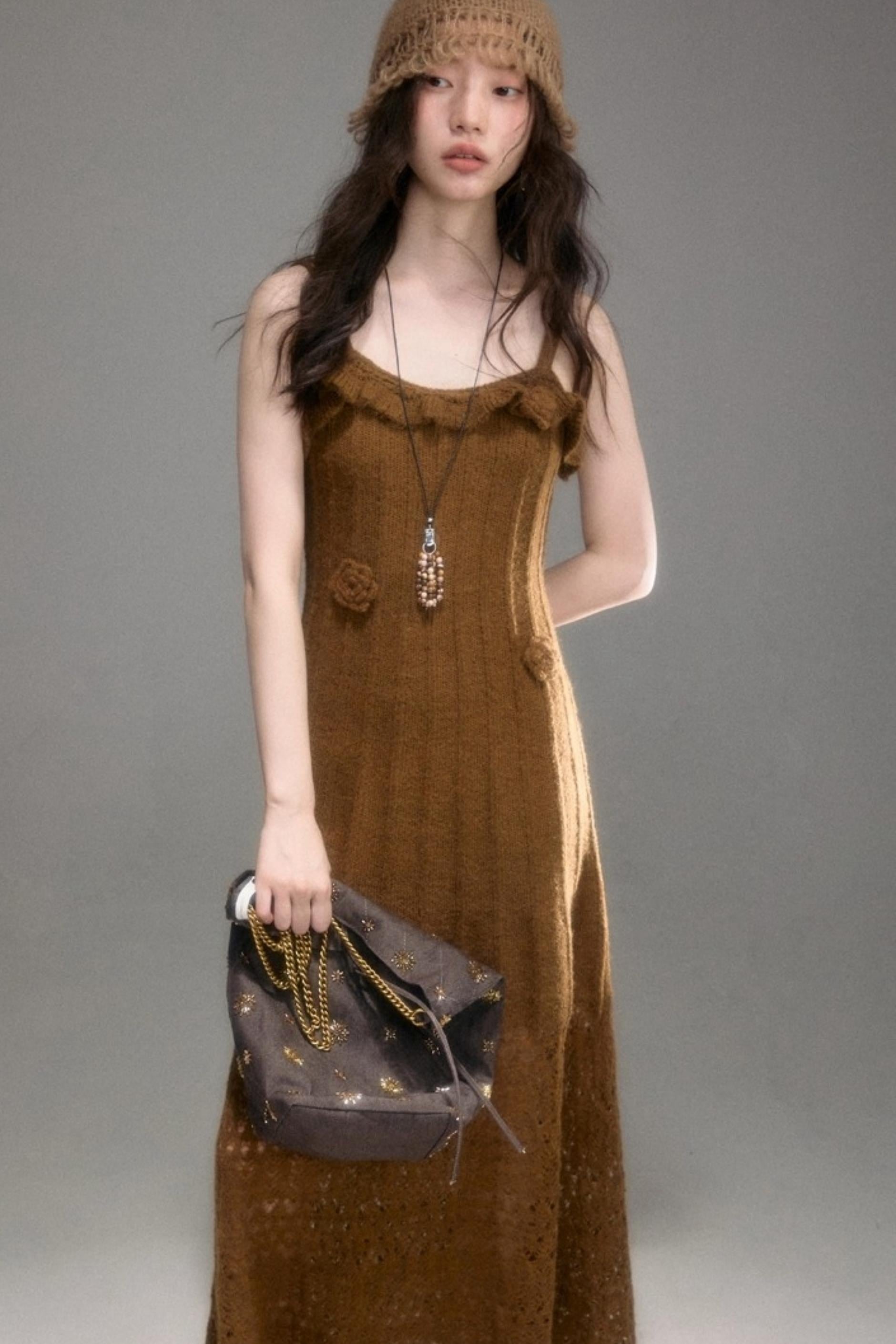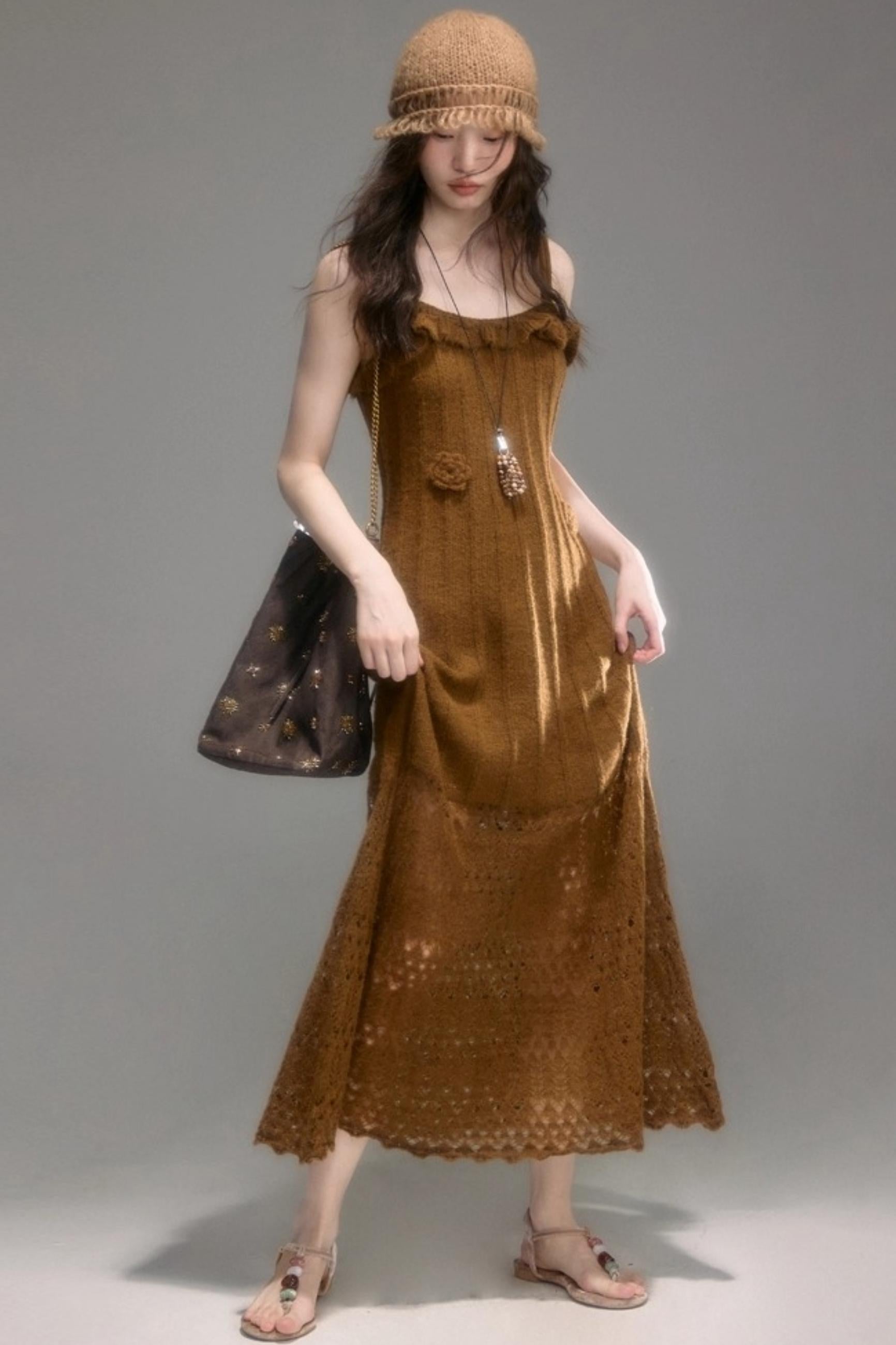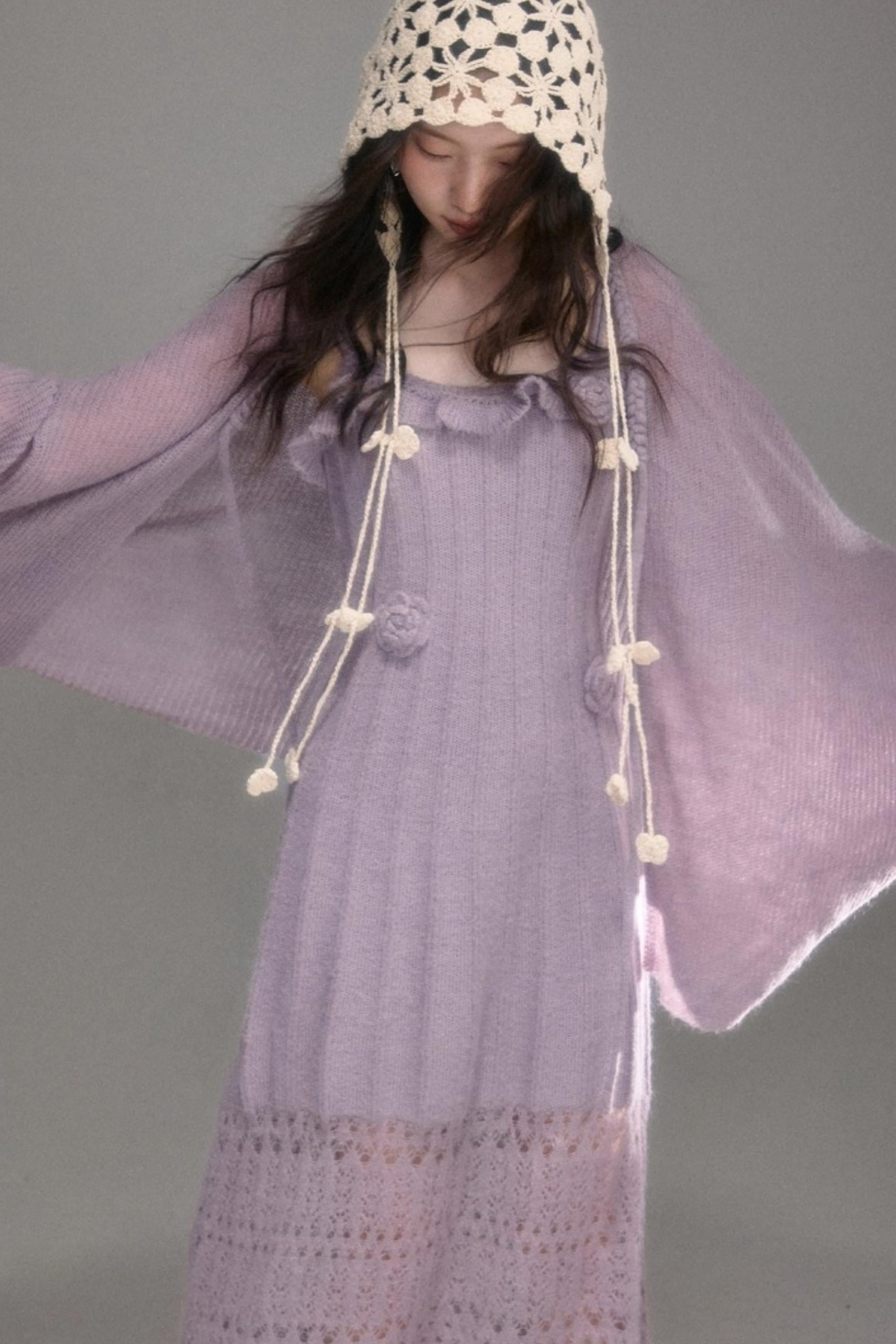 Crochet Knit Camisole Dress Cardigan Set-Up