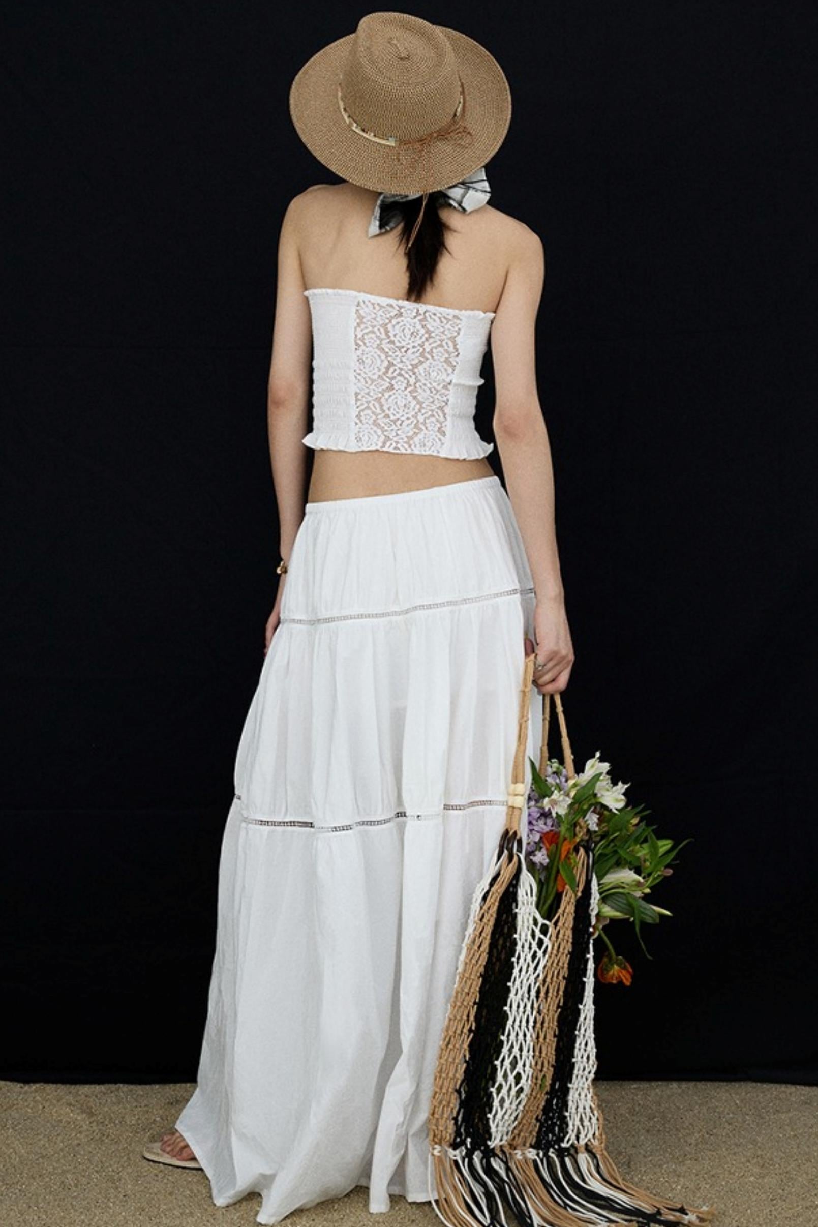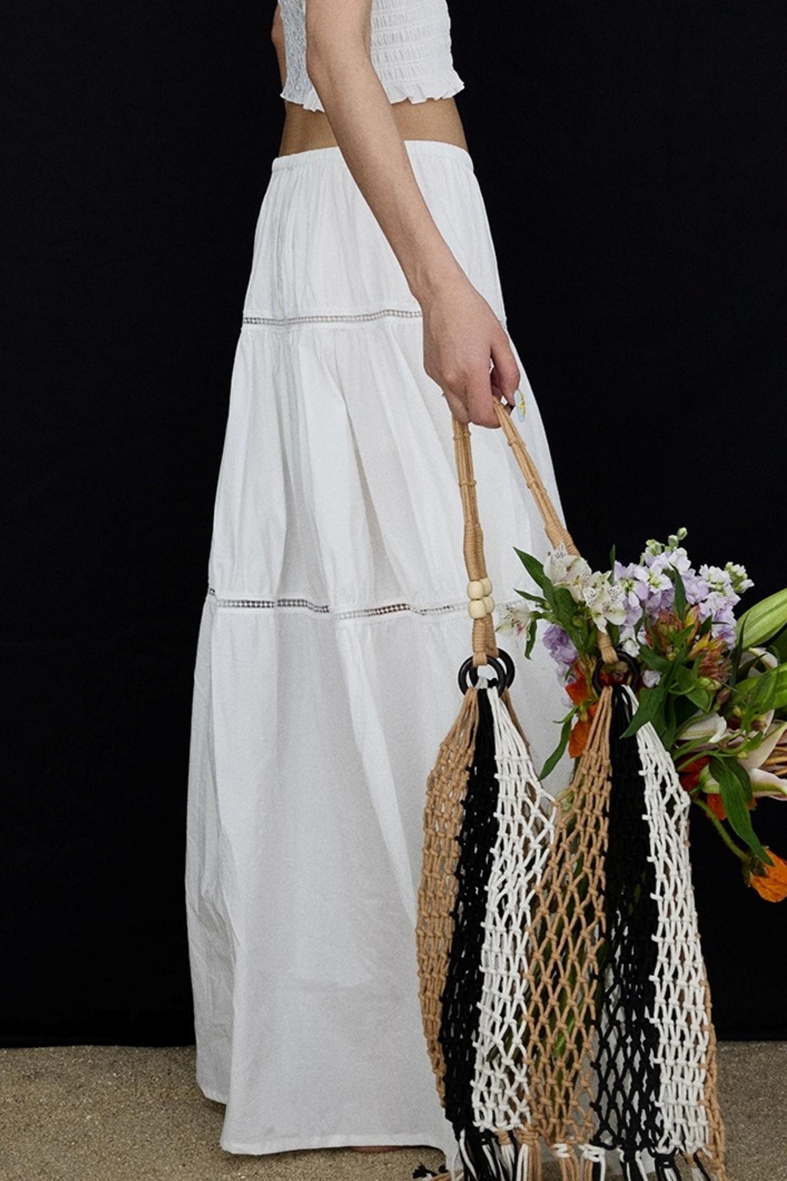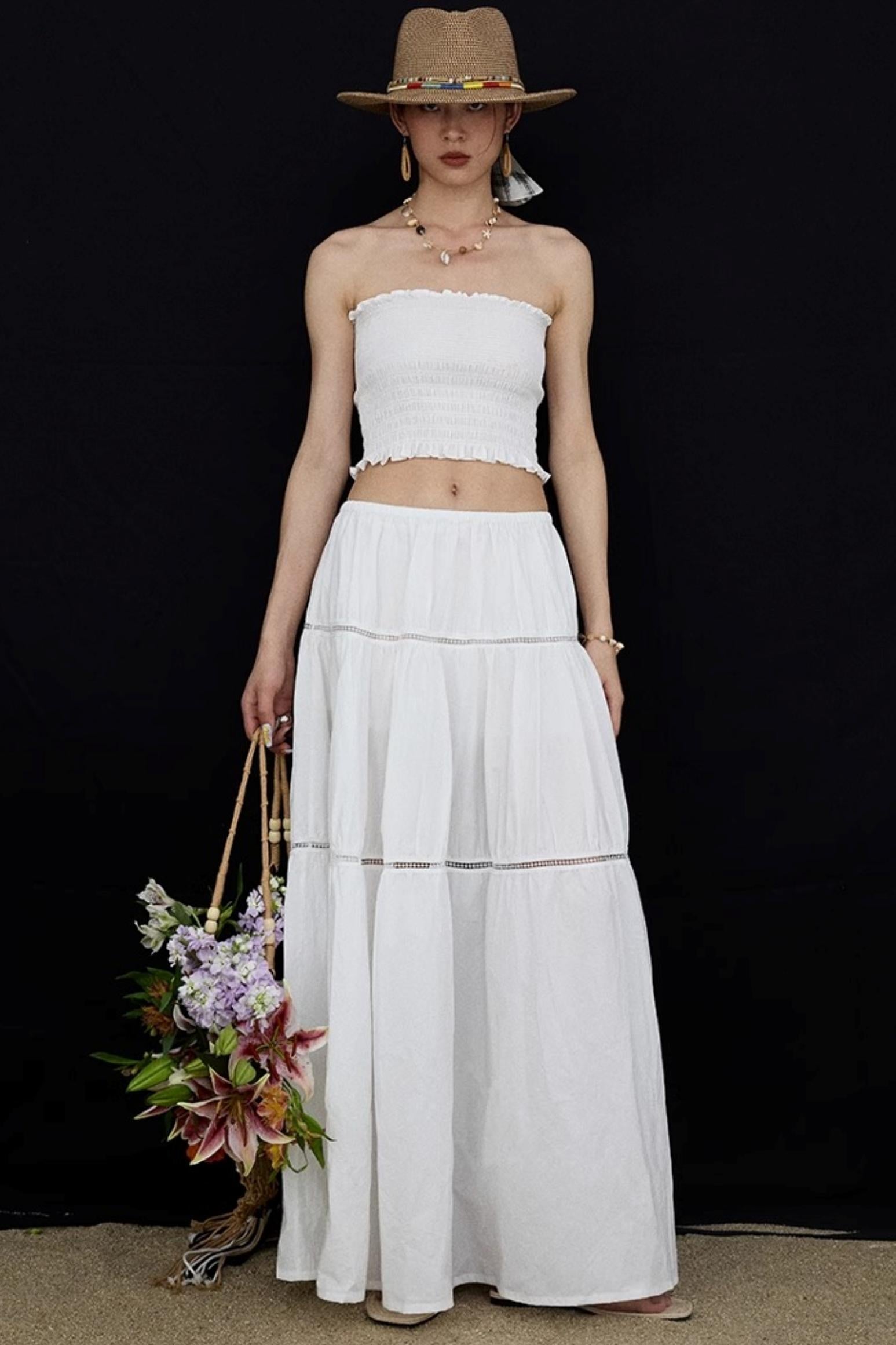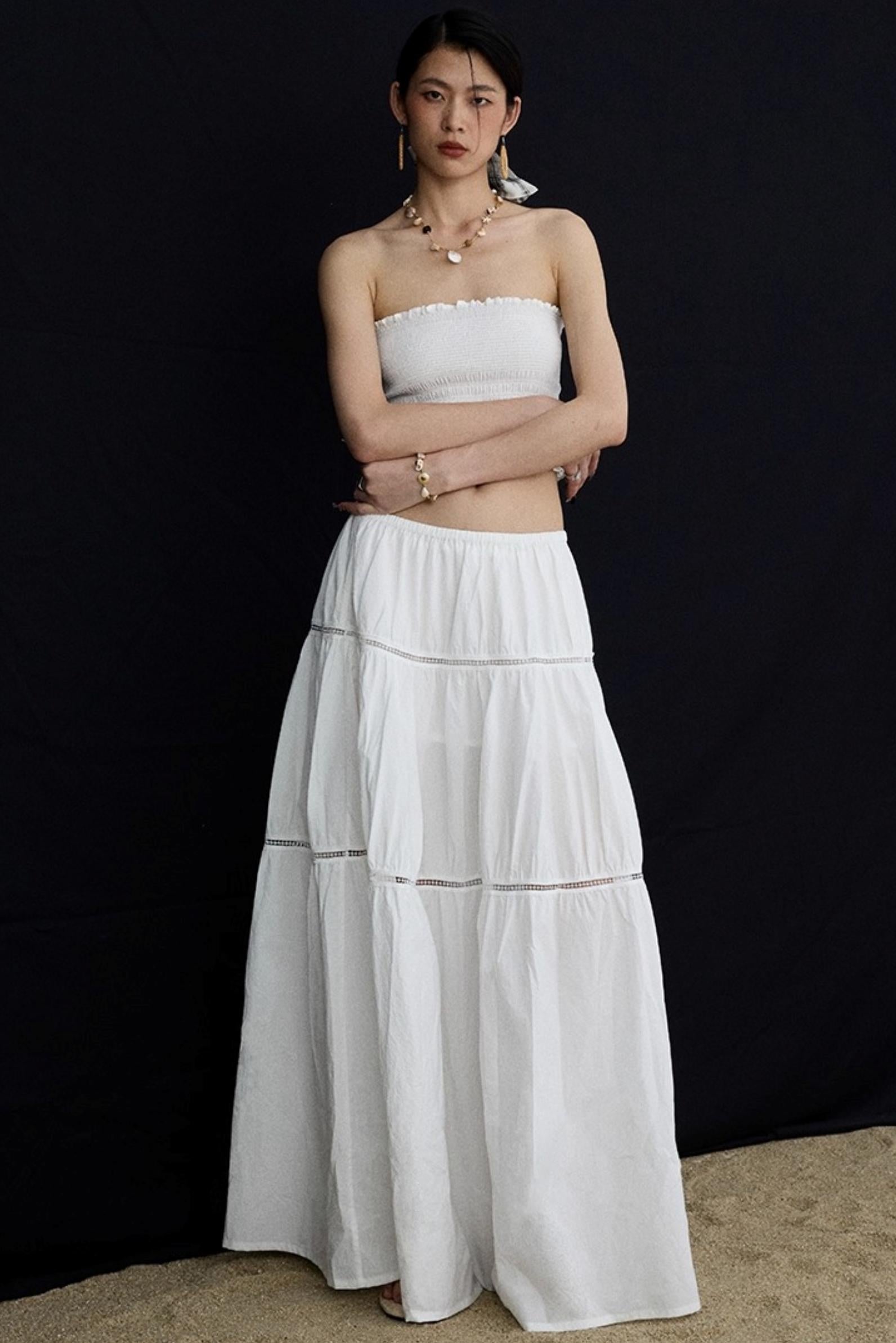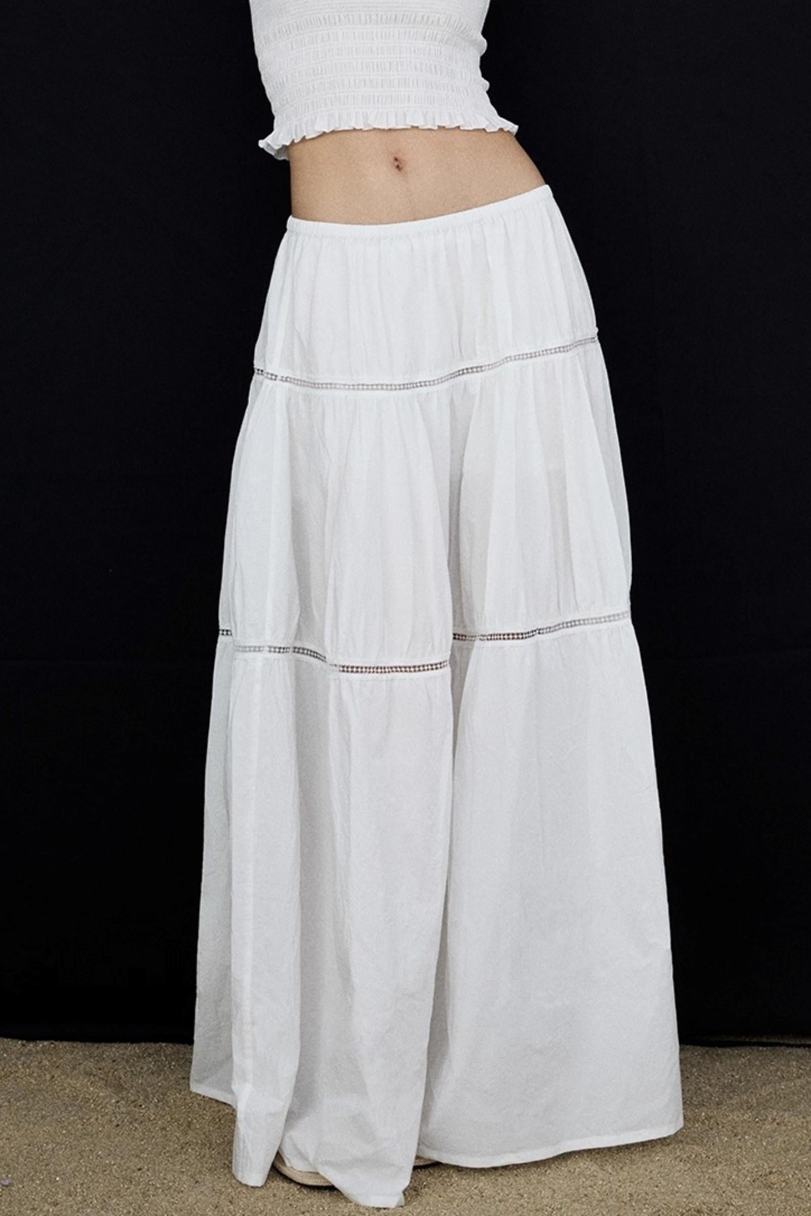 Elasticated White Long Skirt