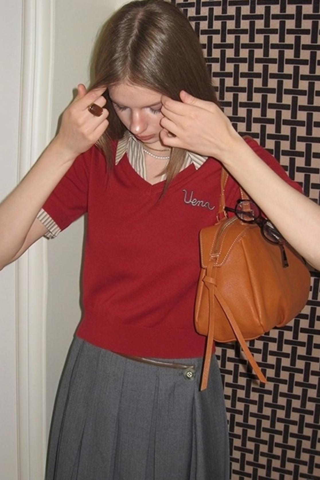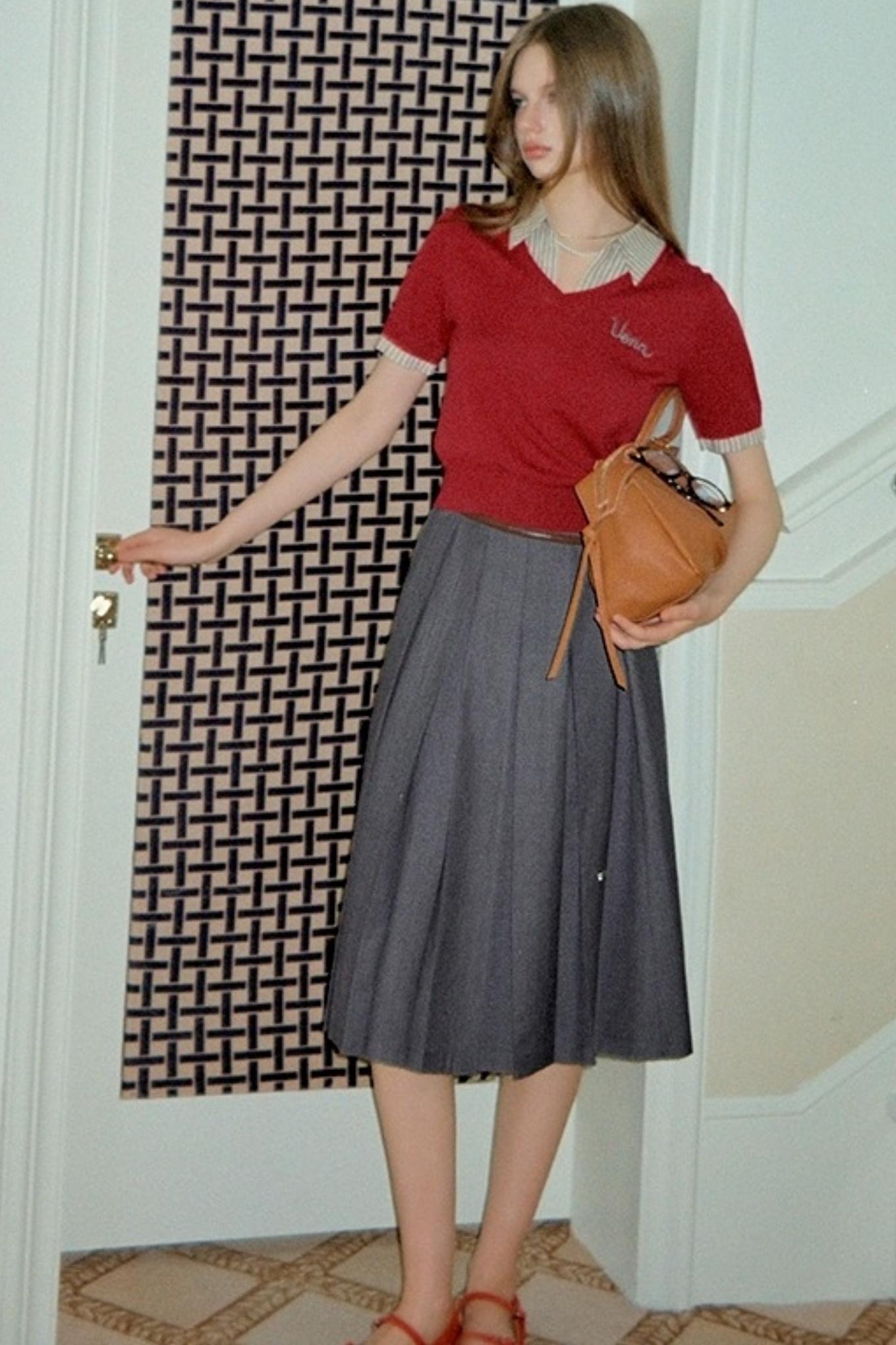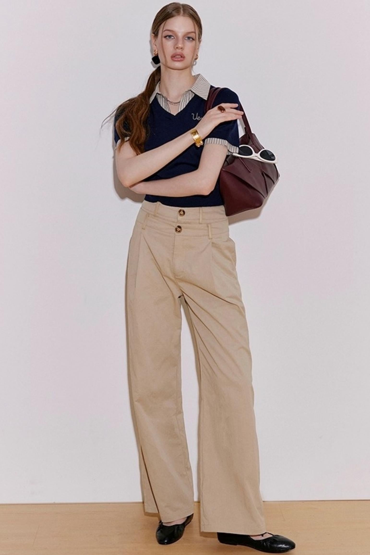 Embroidered Striped Collar Fake Two Piece T-Shirt
