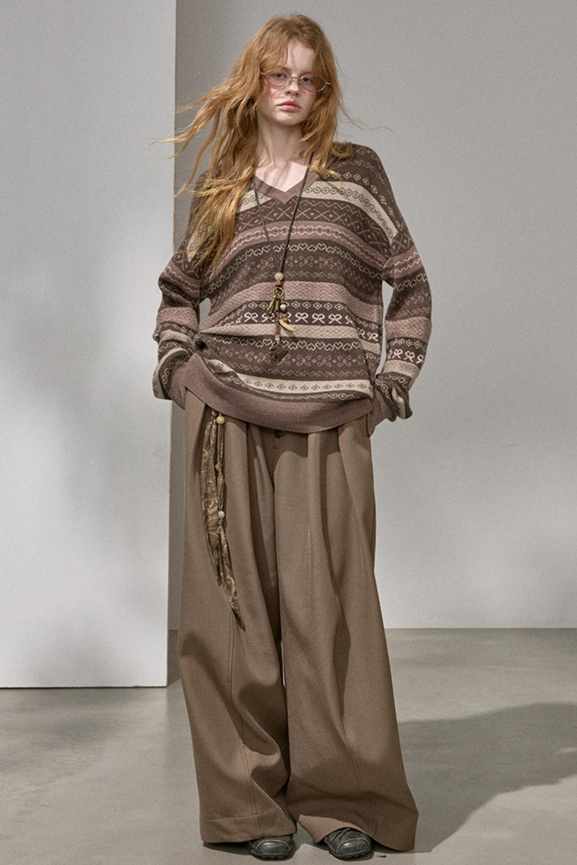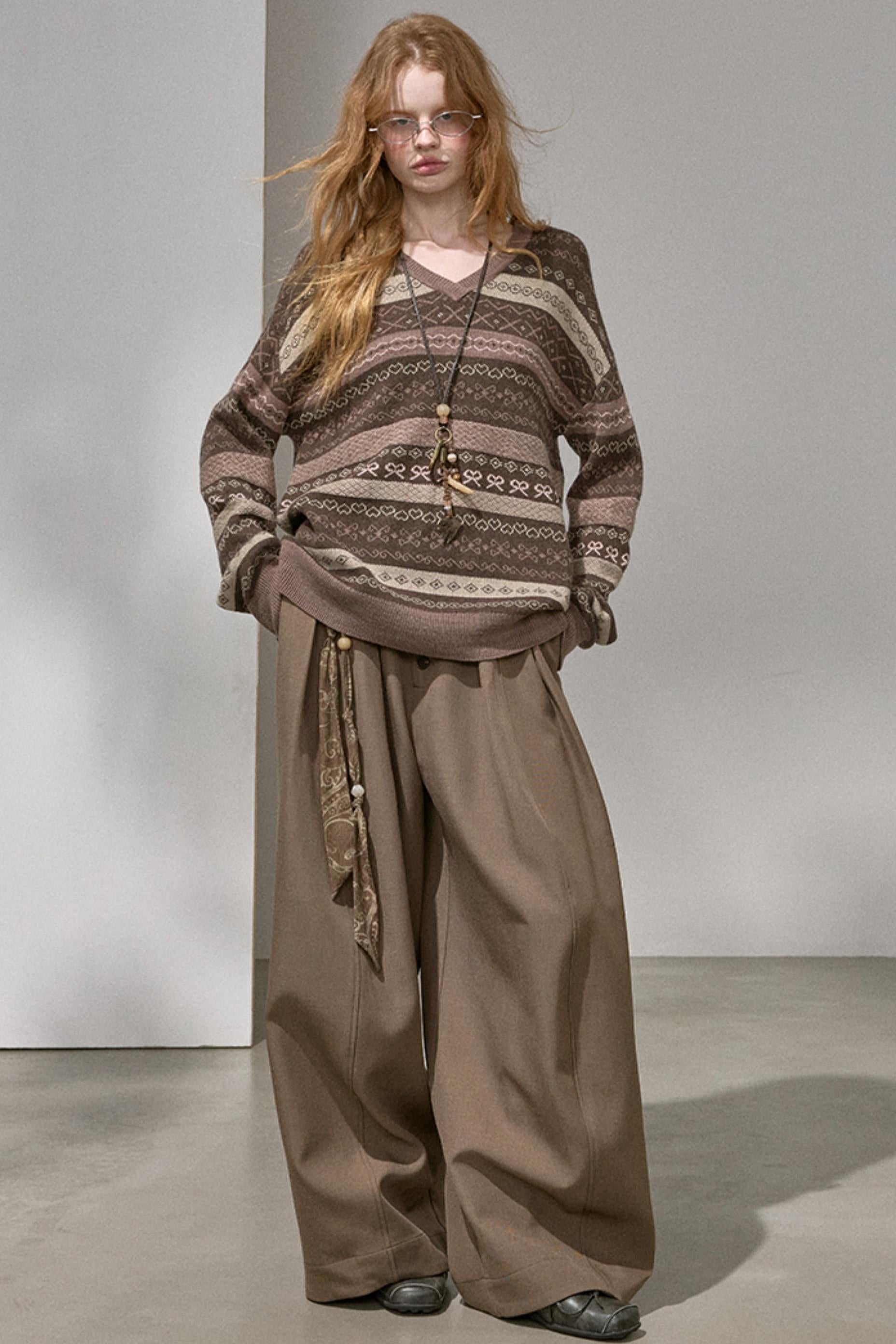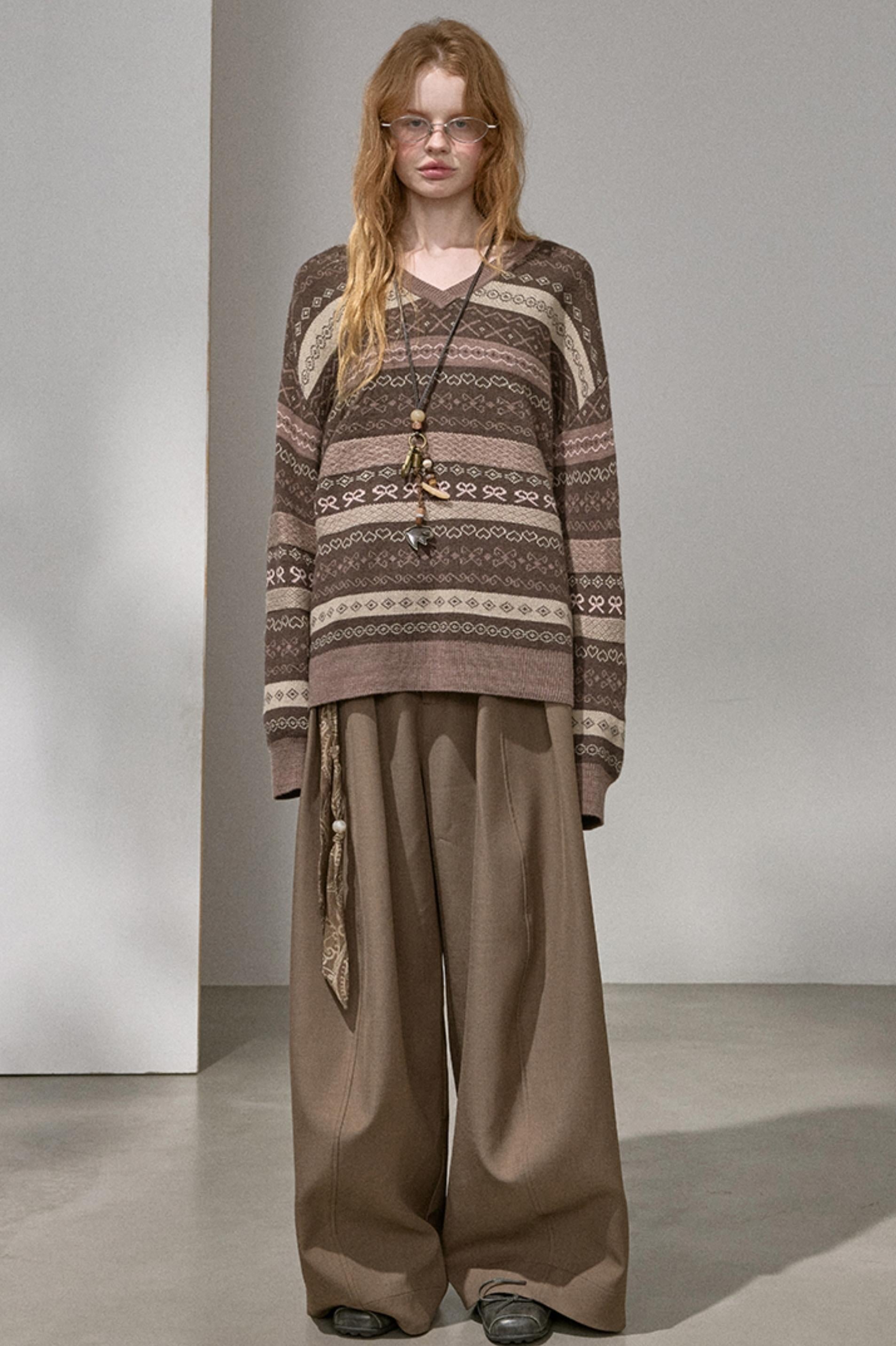 Fair Isle Jacquard V-Neck Top