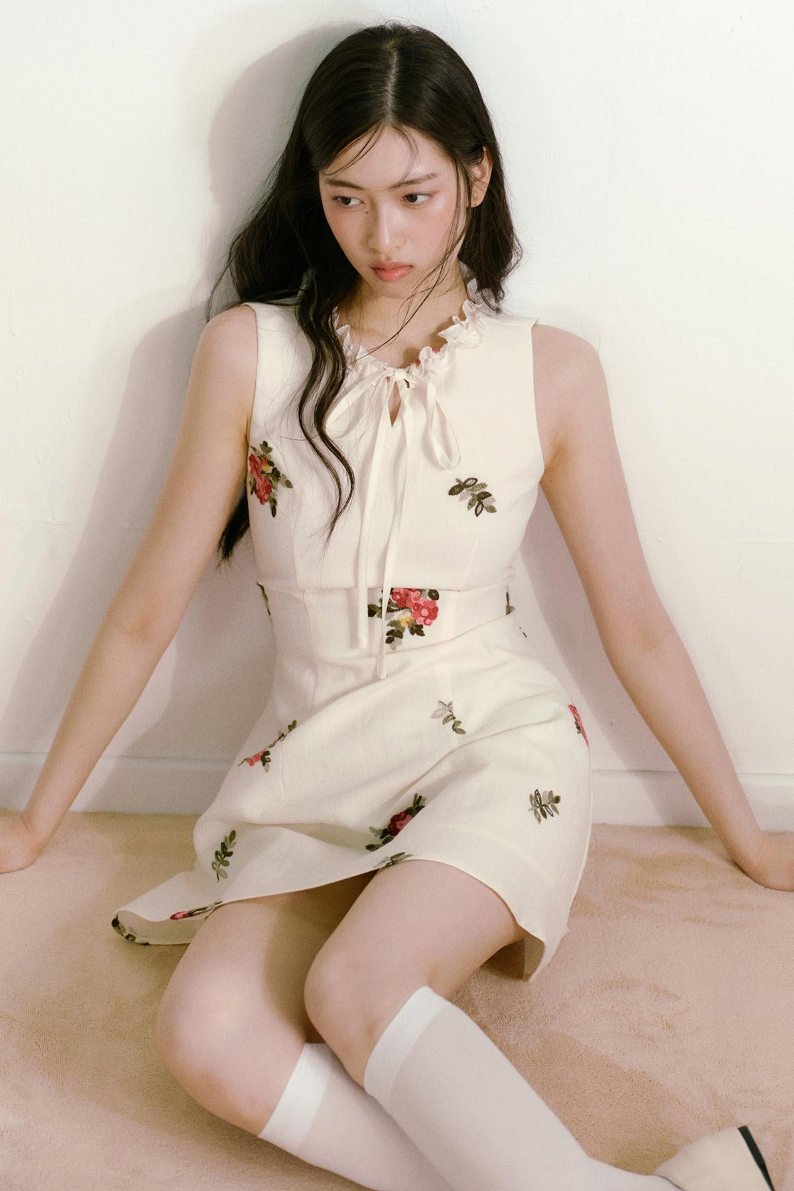 Floral Beige Sleeveless Summer Dress